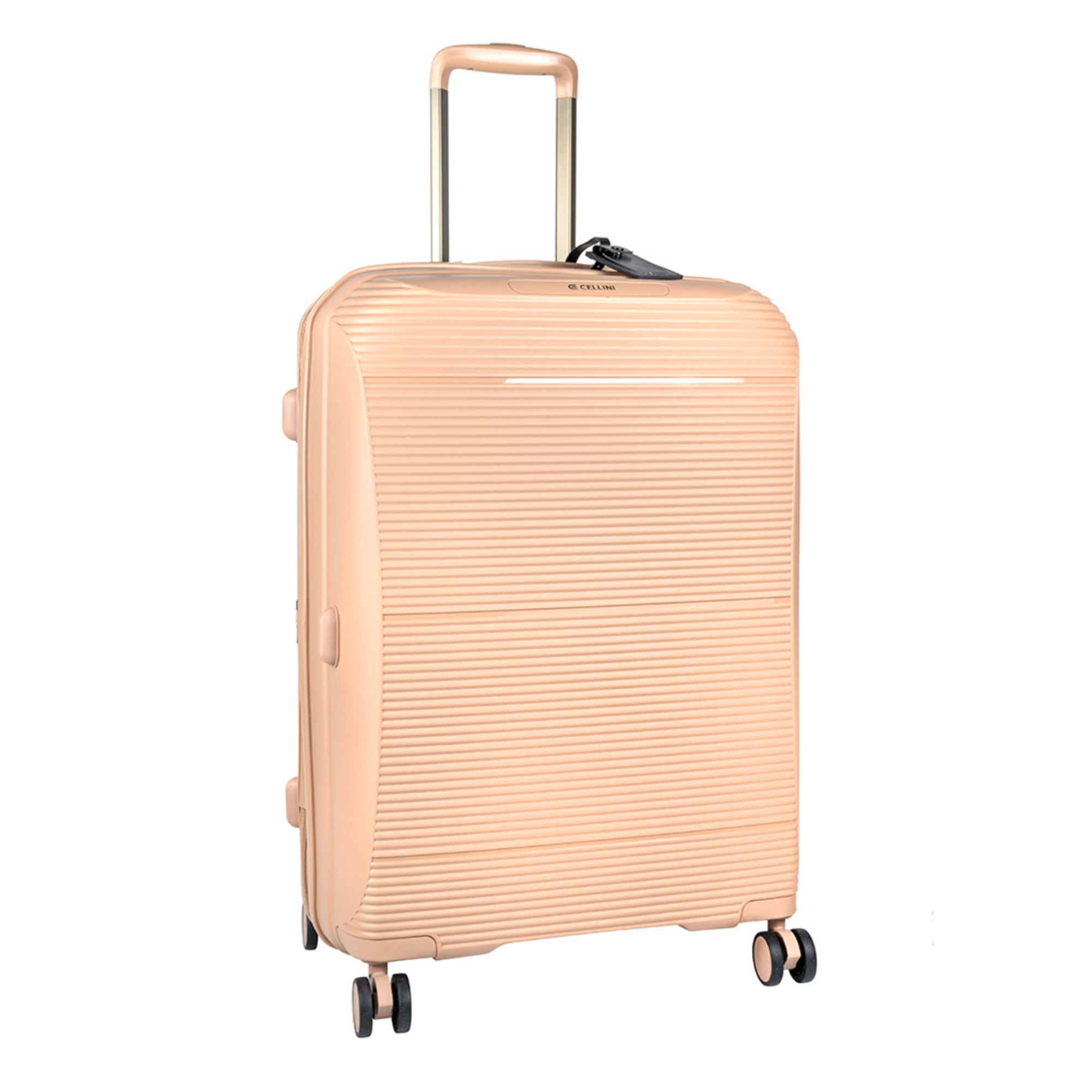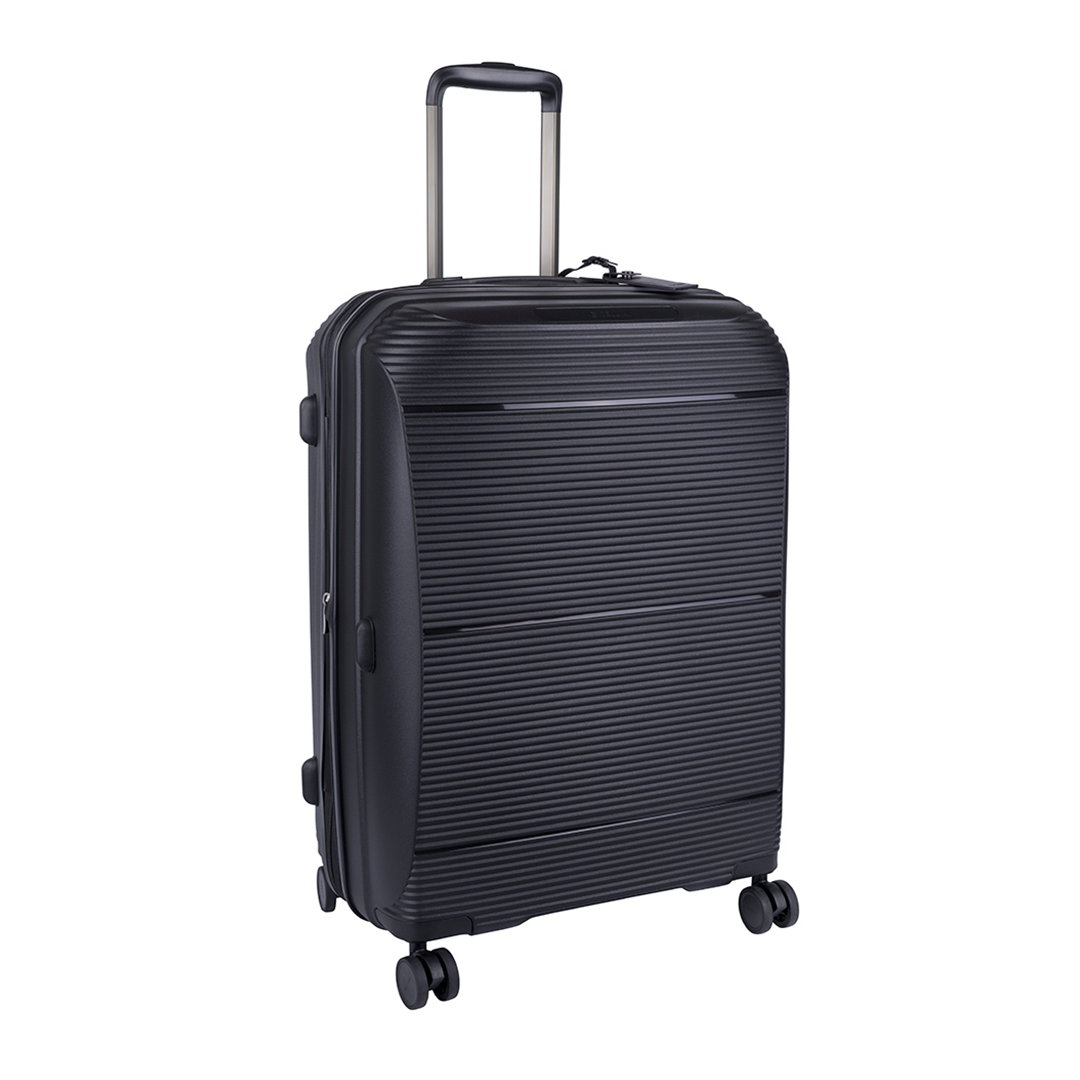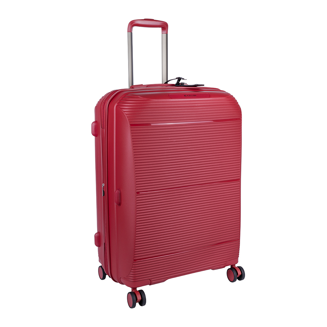 The Medium Trolley Case by Cellini Qwest offers ample packing space with a 20% increase in capacity, making it ideal for both business and leisure travel. Featuring 4 double-wheels and top and side handles, it ensures easy maneuverability. Made from sturdy polypropylene and available in German Red, Black, and Navy, this hardshell collection boasts gunmetal hardware and a bespoke ID tag for a stylish touch. Its interior is equipped with the Inside Story Packing System, including a wet pouch for damp items, and the Trakpouch compartment for secure storage of a luggage tracking device, enhancing organization and peace of mind while traveling.