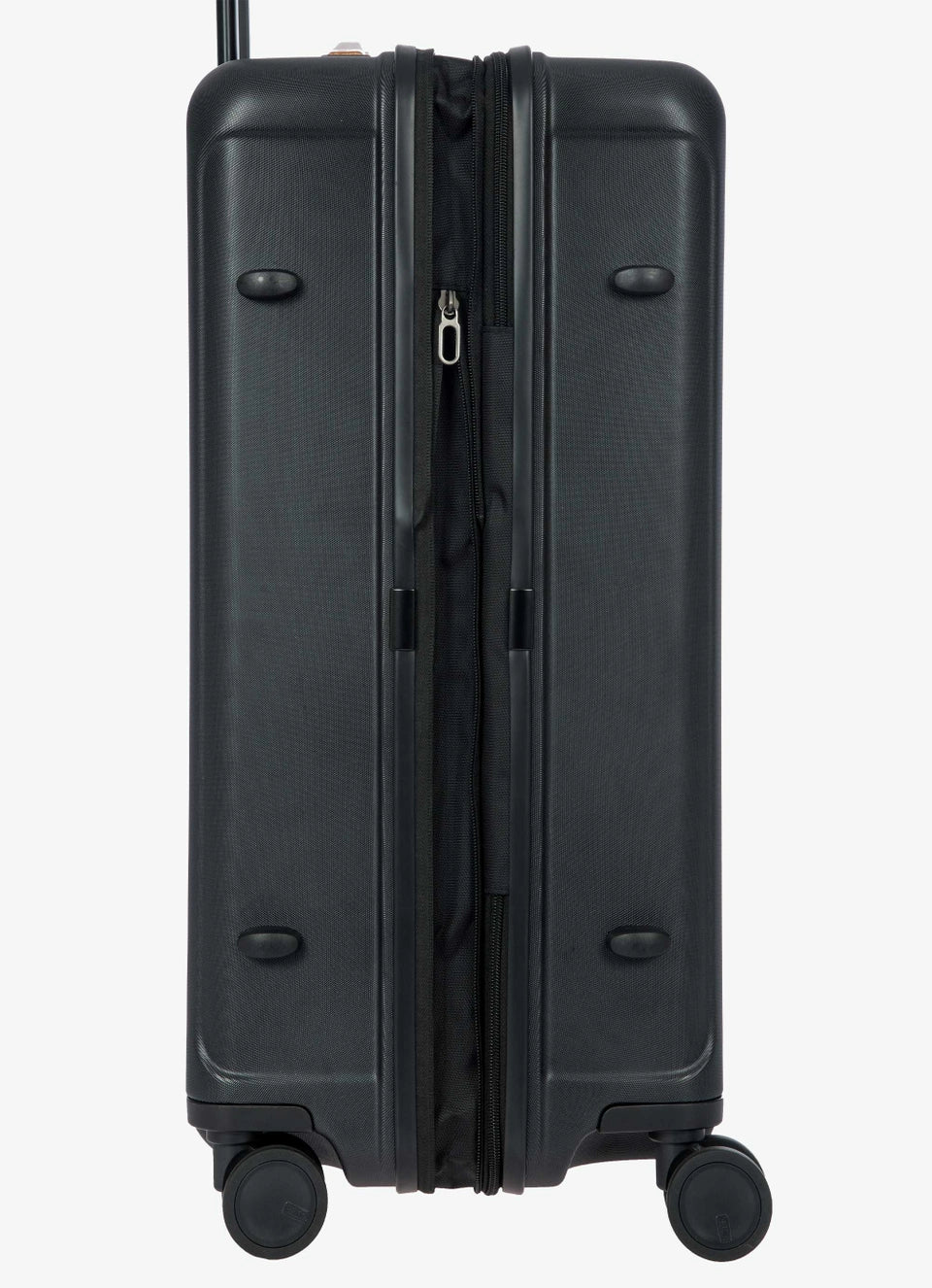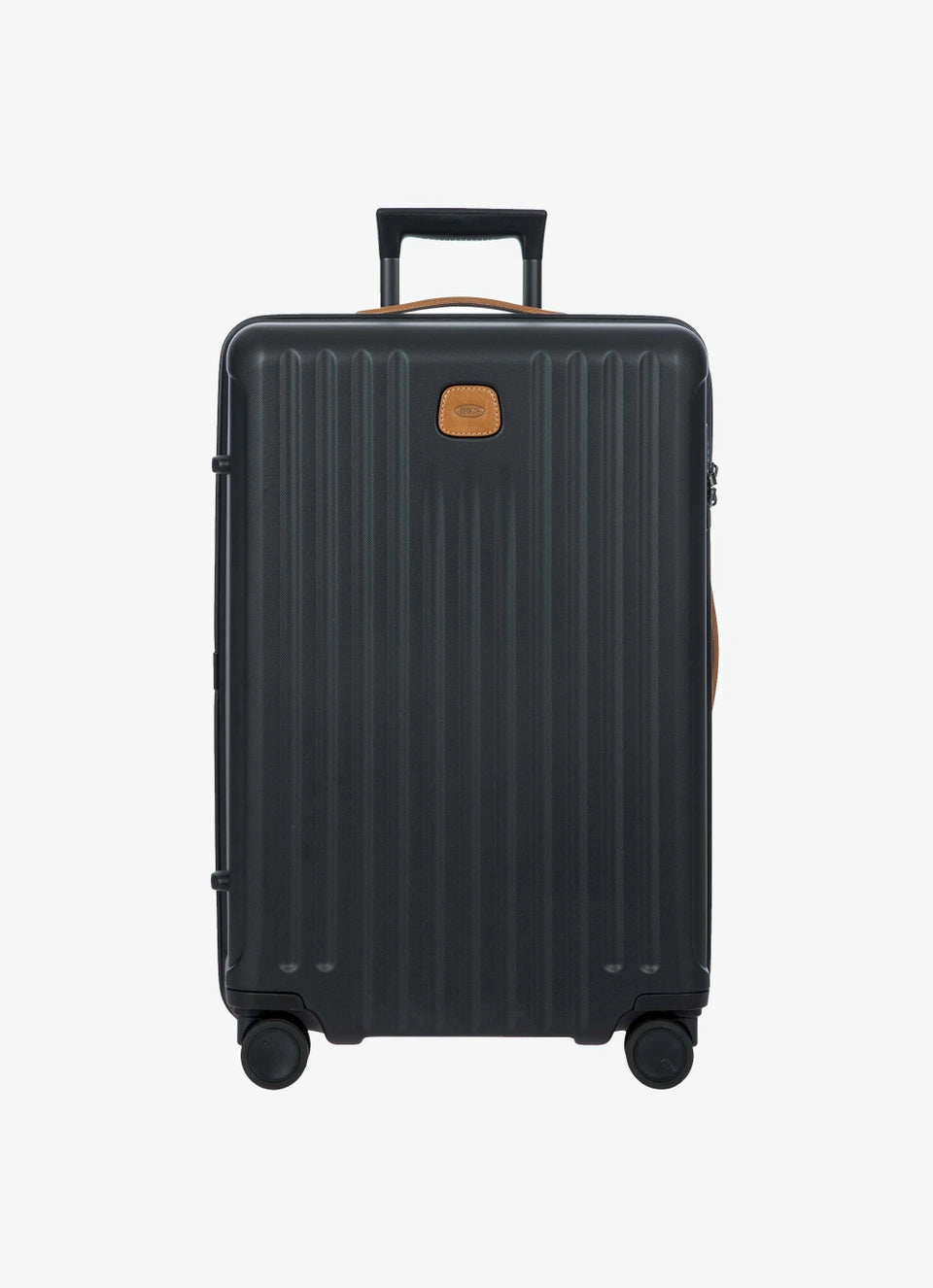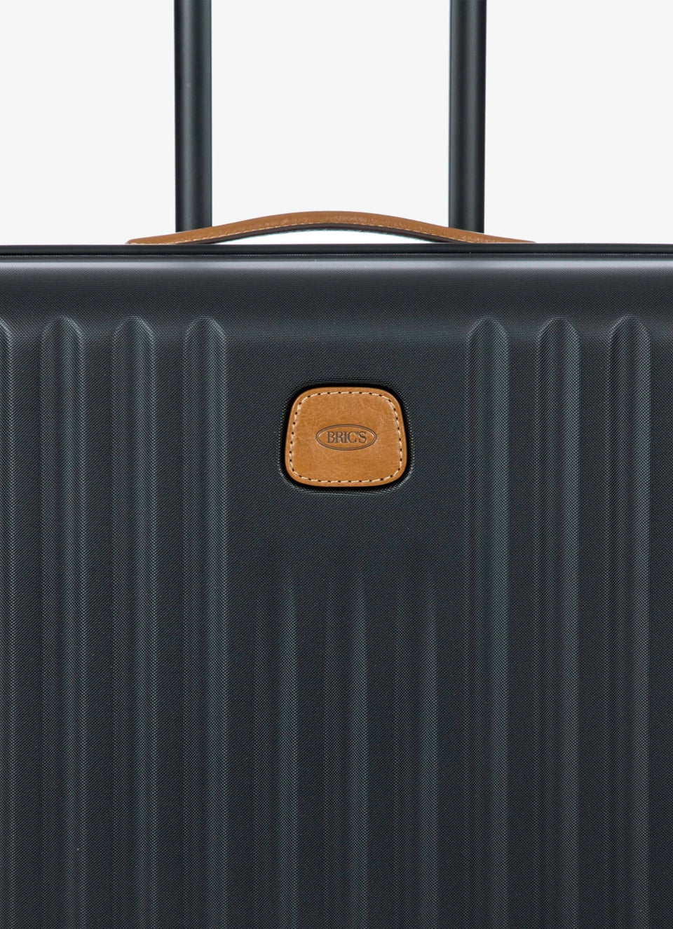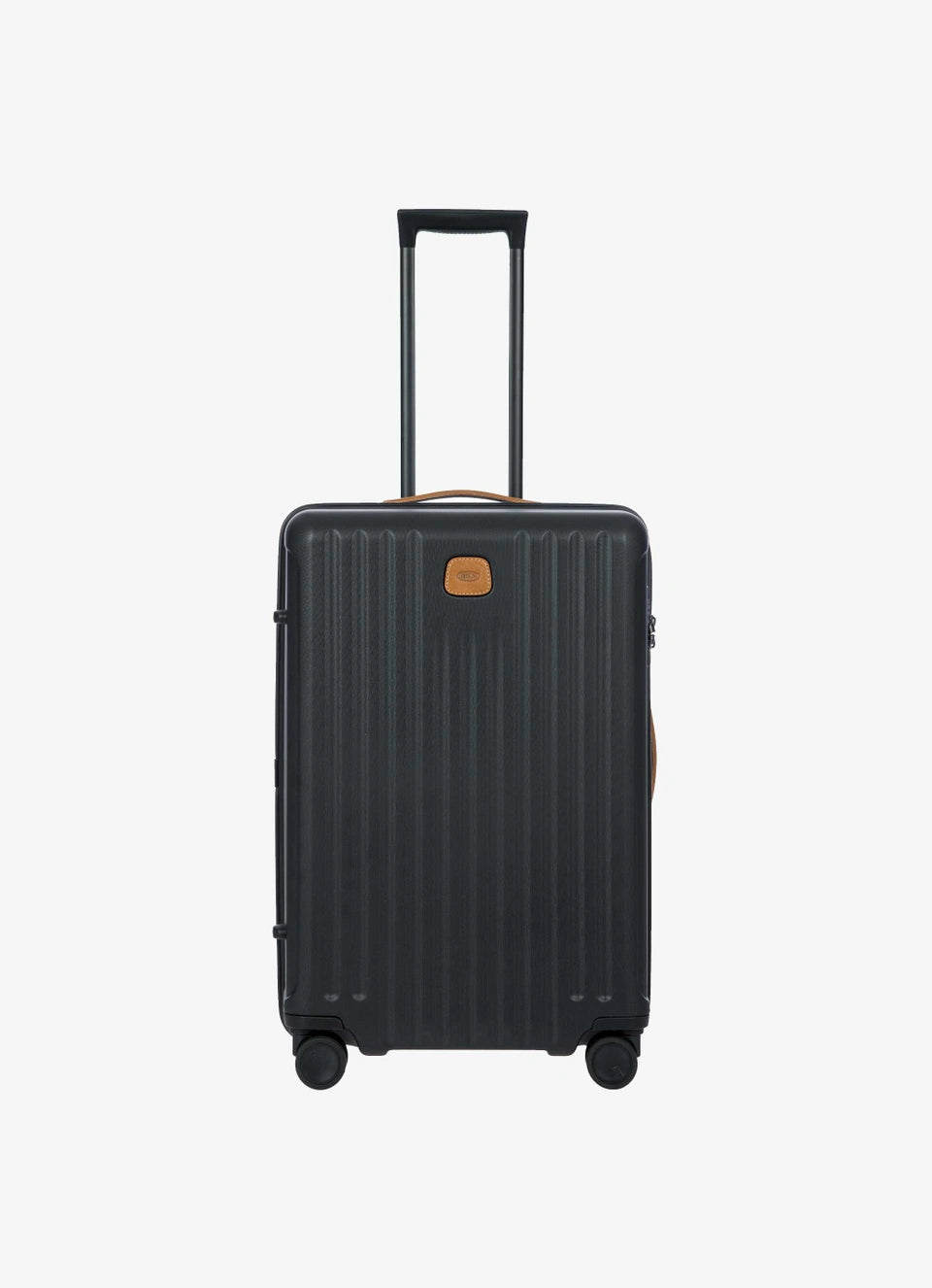 The medium Capri expandable hard-shell trolley offers a perfect blend of durability and practicality. Its polycarbonate shell is both flexible and strong, highlighted by cowhide details and contrasting top-stitching, with a TSA combination lock for added security. The expandable zipper adds an extra 4 cm of space when needed. The trolley features an aluminum pull-along handle with an ergonomic grip, along with leather top and side handles for easy carrying. Inside, you'll find a zipped double compartment with polyester straps and a garment hook for added organization. Its four recessed, 360° swivel wheels provide smooth, quiet movement and enhanced stability, with easily replaceable wheels for long-term use.