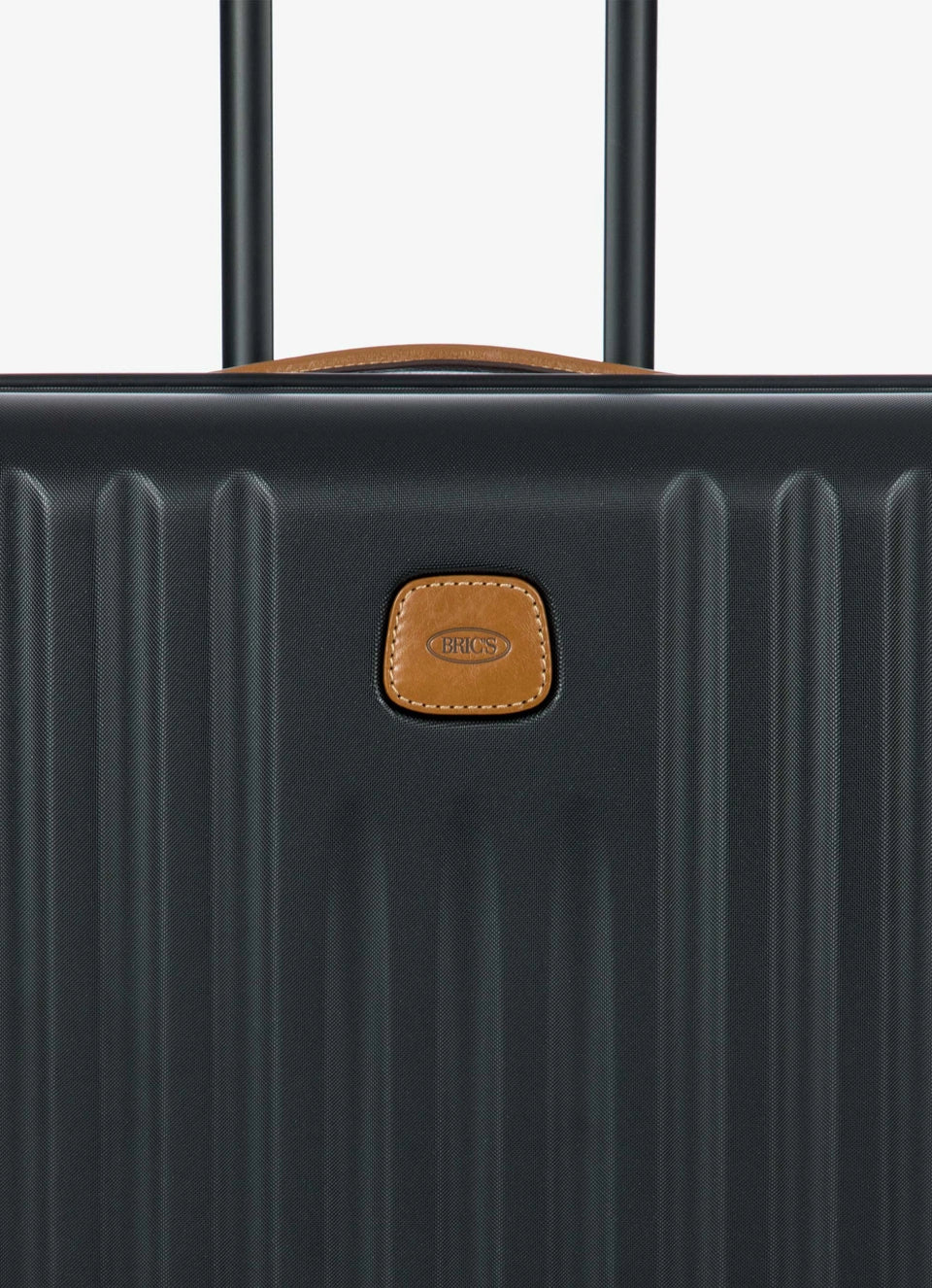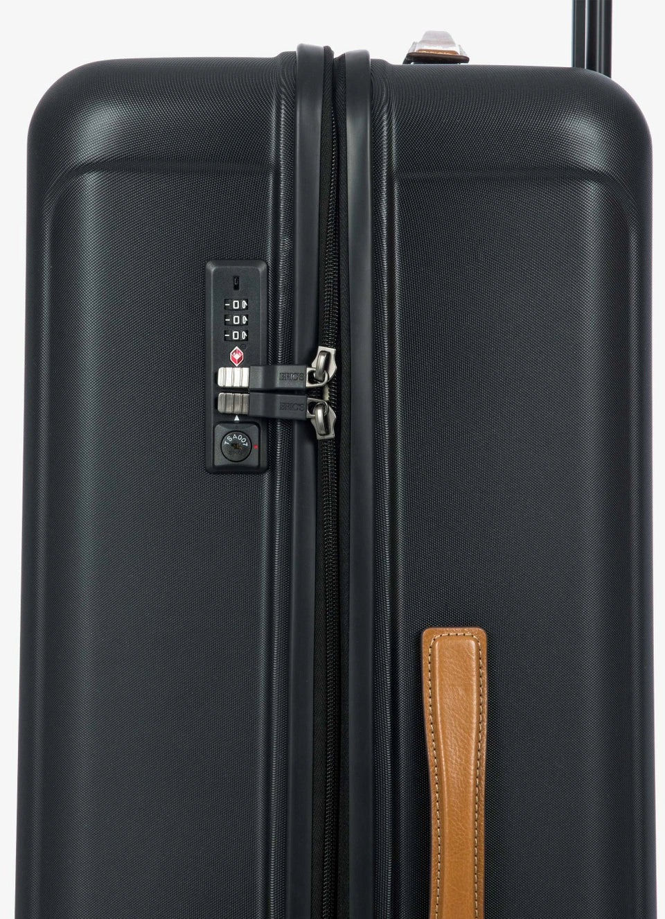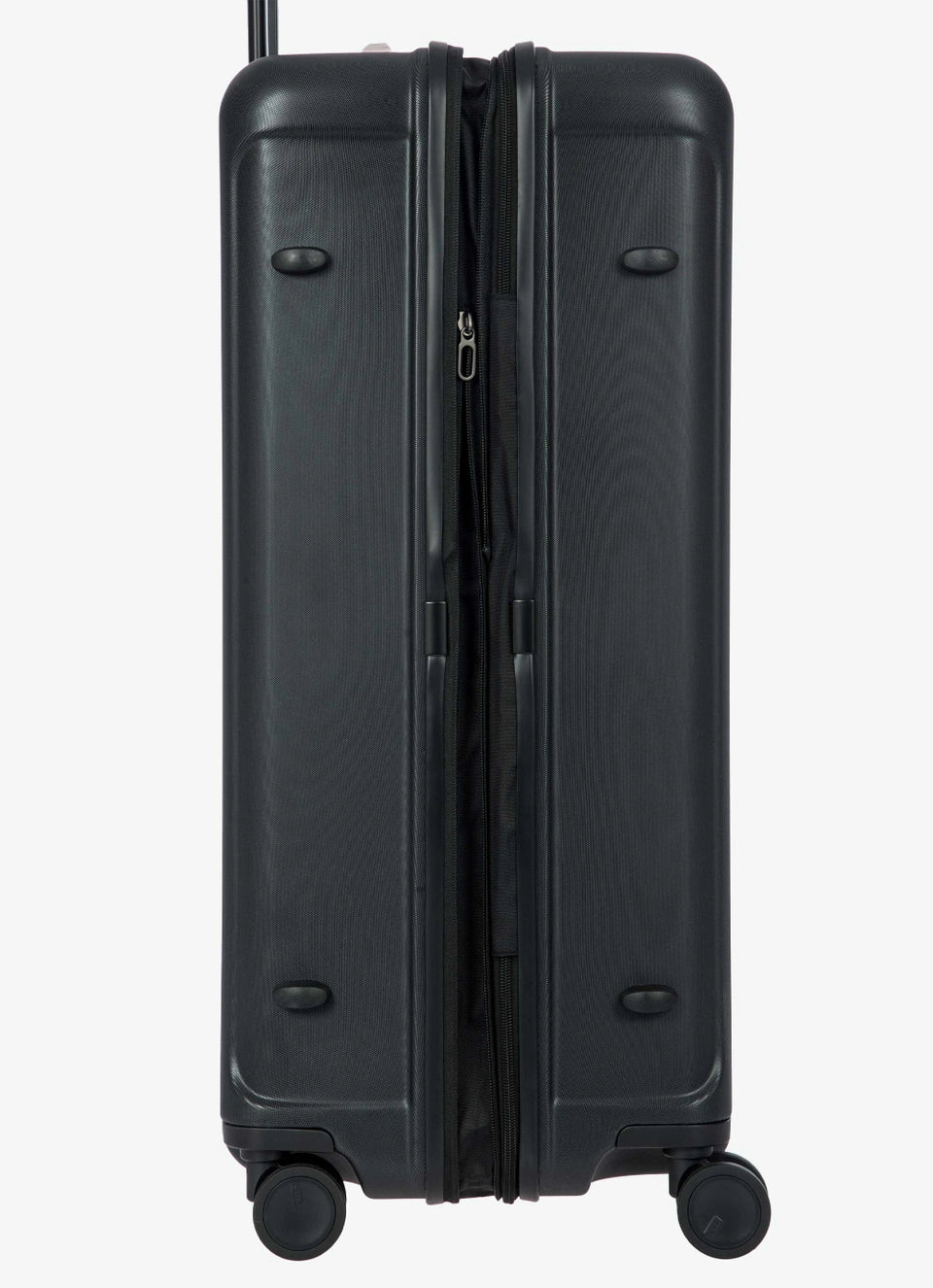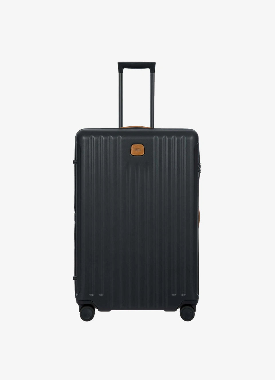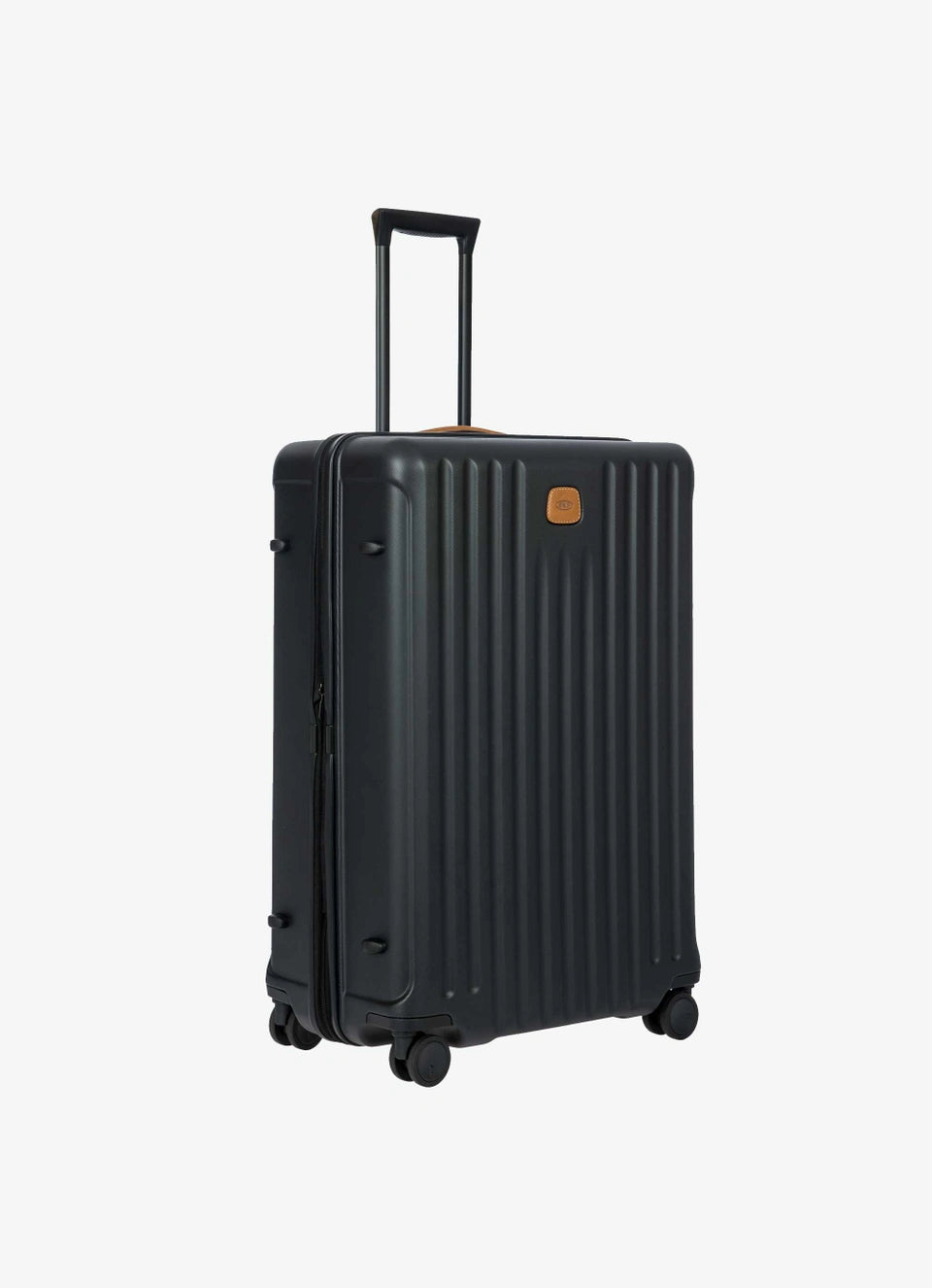 The large Capri expandable hard-shell trolley combines durability, functionality, and style. Crafted from a flexible polycarbonate shell with cowhide accents and contrasting top-stitching, it includes a TSA combination lock for security. The expandable zipper offers an additional 4 cm of space when needed. The trolley features a sturdy aluminum pull-along handle with an ergonomic grip and a leather top handle for added convenience. Inside, a zipped double compartment with polyester straps and a garment hook ensures organized packing. Its four recessed 360° swivel wheels provide smooth and quiet maneuverability.