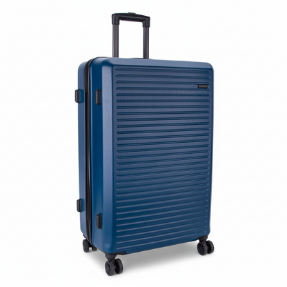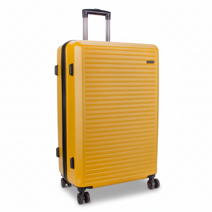 The spacious interior of the 75cm 4-Wheel Hardshell Check-in Trolley Case will store all your travel items neatly for arrival at your destination. The fixed combination lock and 3-year warranty provide security and peace of mind while away from home. The fresh new Voyager Mahé collection in shades of Jet Black, Space Blue and Mustard, with distinctive horizontal lines adds a new exciting element to travel accessories. It has been designed with the modern traveller in mind.
