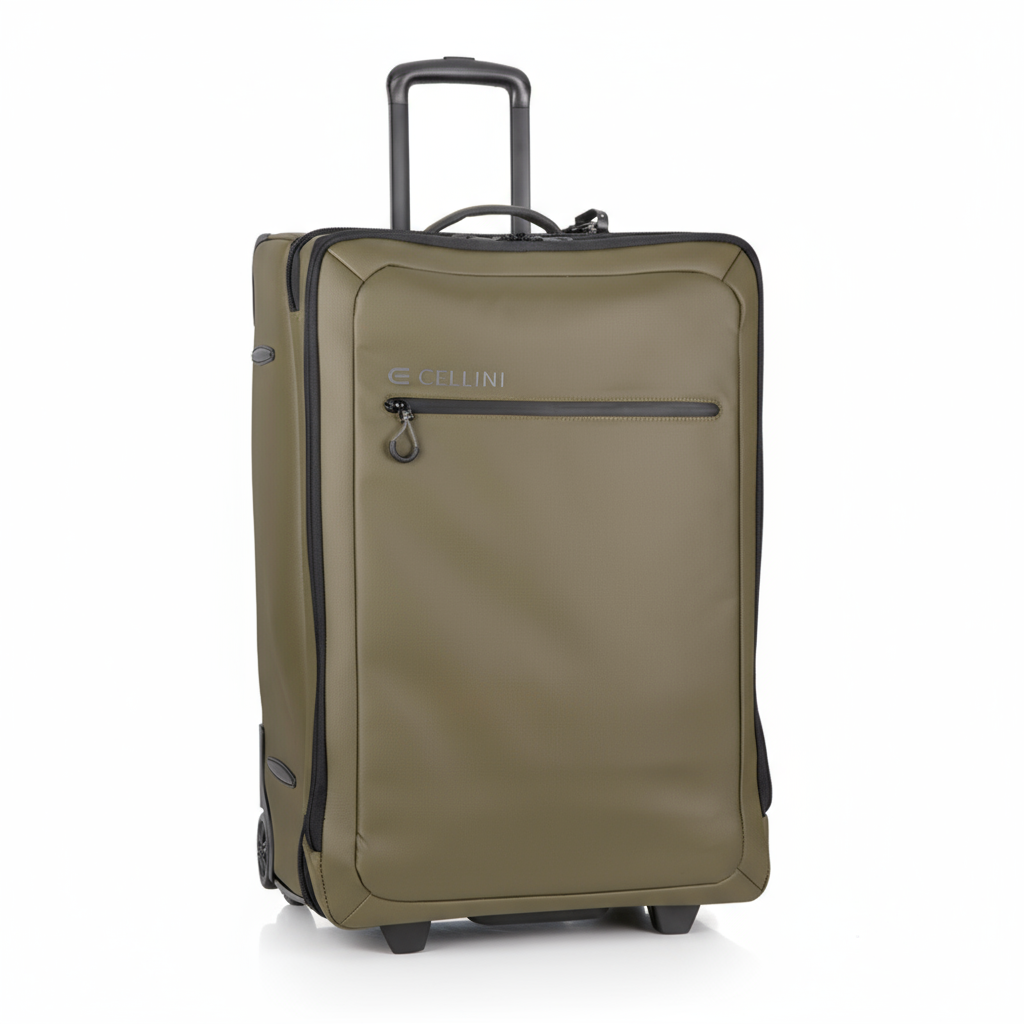 Unleash your adventurous spirit with the Cellini Nomad Large Trolley Pullman, designed with innovative oversized all-terrain wheels that provide exceptional stability and durability on every journey. Its dual packing system boasts an impressive extra-large capacity, while the trakpouch tracking tag storage system keeps your tracking device secure and easily accessible. Experience the superior craftsmanship of the water-resistant coated PU material, complemented by a water-resistant zipper on the smaller front pocket, ensuring that all your travel essentials stay safe and dry, no matter where your travels take you.