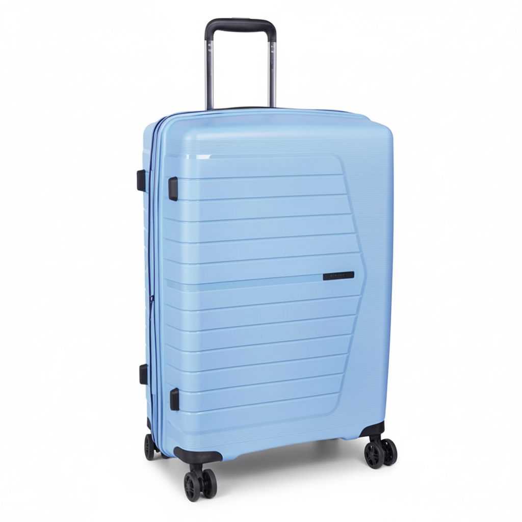 Cellini Starlite is a dazzling new range of luggage designed to offer you an unforgettable travel experience gliding smoothly on 4 double-wheels. This collection is available in vibrant colours with matching colour zips and tie-down straps. The Cellini Starlite Case with an integrated TSA lock, is spacious and stylish with the Expander feature providing 20% extra volume packing space if needed. The light grey interior features both a mesh lining to better secure your clothing and the Inside Story Packing System with a wet pouch for damp items to optimise packing configuration, while the fitted Trak-pouch compartment offers a secure storage for your luggage tracking device to provide peace of mind while away from home.