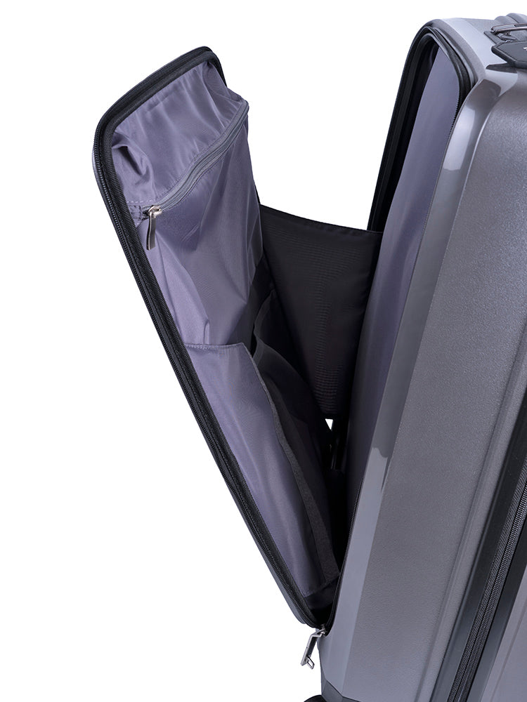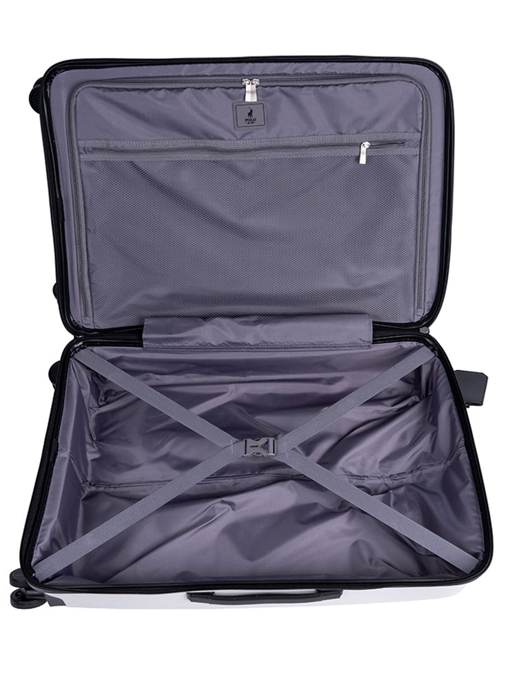 Whether you are traveling for business or leisure, the Polo Proflex Fusion Medium Trolley Case makes a stylish statement wherever you land. The front compartment can hold a book or magazine, and extra accessories that can easily be accessed during transit. The interior features double-sided packing, with tie-down straps on 1 side and zipped compartments on the other. The double glider wheels, telescopic pulling handle, and top carry handle all ensure easy mobility on route to your destination. The innovative Dual Integrated TSA Lock conveniently allows you to open the main or front compartment independently. The updated Polo Proflex Fusion luggage collection is available in eye-catching White and Charcoal and has been crafted to exude an element of sleek modern chic design to complement the style of classy travelers.