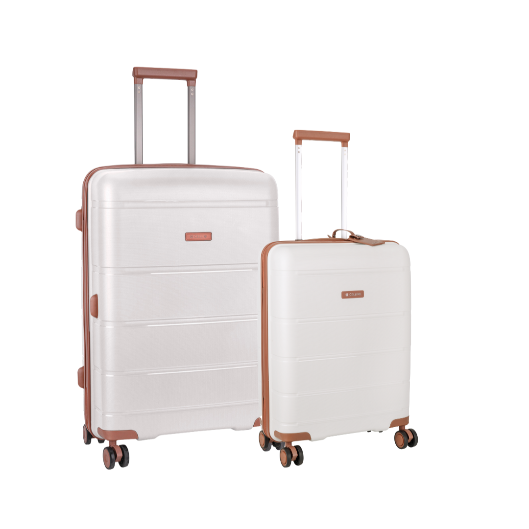 Upgrade your travel essentials with the Polo Monte Carlo 2-Piece Travel Set from Cellini. This versatile set includes a large check-in or a medium check-in suitcase and a carry-on, giving you the perfect pairing for both short trips and extended getaways. Designed for modern travellers, each case features a durable hard-shell exterior, smooth 360° spinner wheels, and an adjustable telescopic handle for easy navigation. Choose from three stylish colours: White, Moccha, and Black—and travel with confidence, comfort, and class.