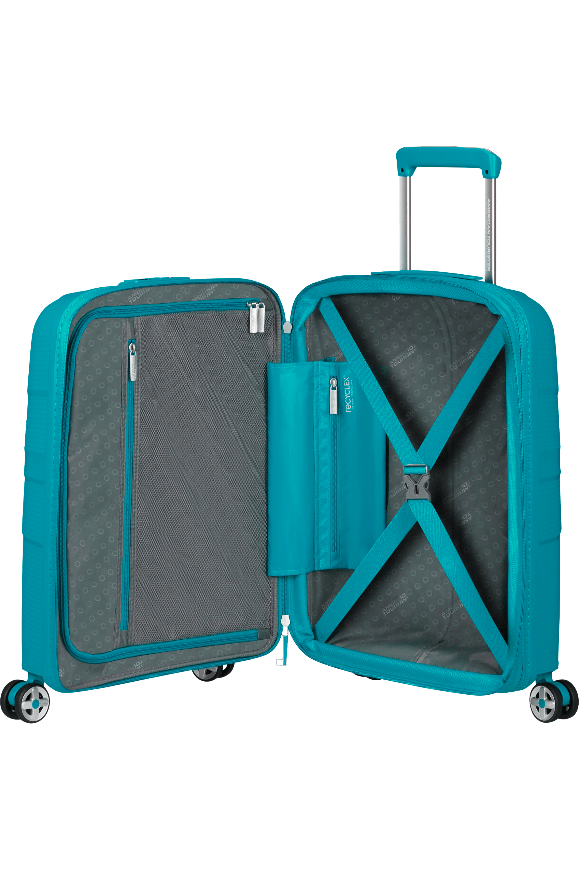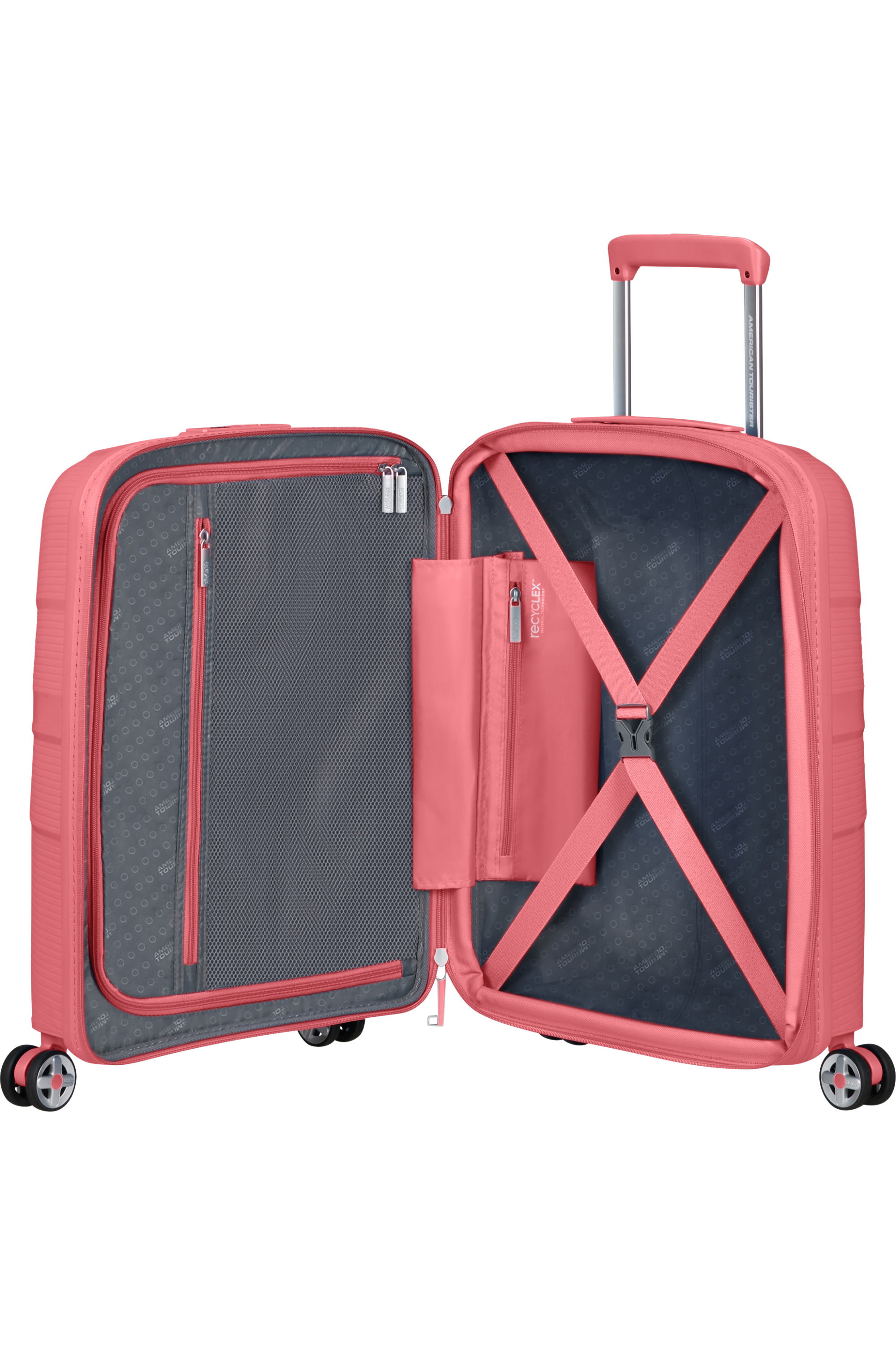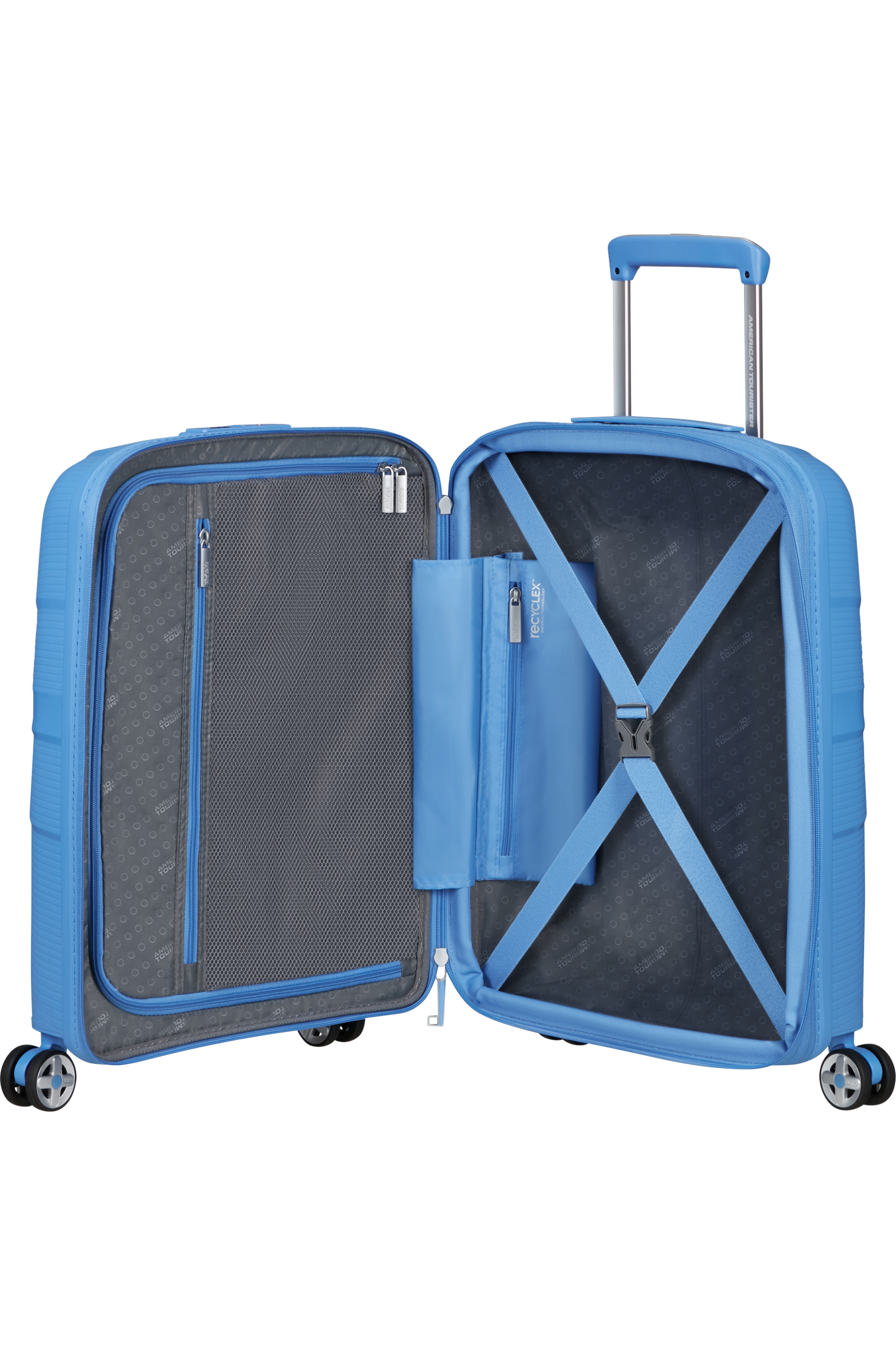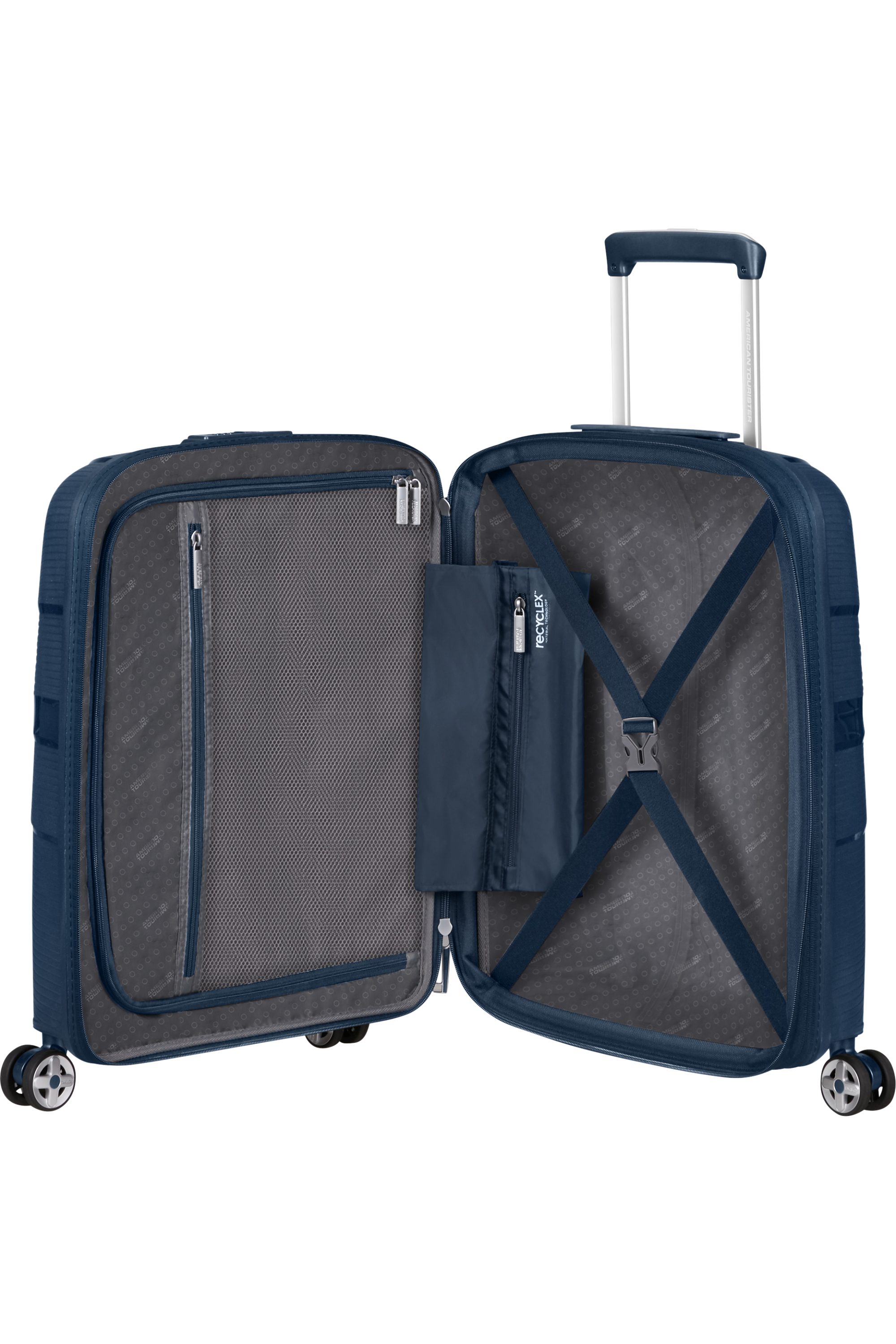 The Starvibe Spinner Expandable TSA 55cm From American Tourister’s Starvibe Series Is An Extremely Lightweight, Yet Wonderfully Durable Suitcase With An Attractive Radial Design. In Its Size, Which Is Accepted As Hand Luggage By Many Airlines, It Promises Structured Accommodation Of Wardrobe For One Or A Maximum Of Two Overnight Stays, And Its Volume Can Even Be Expanded If Necessary.