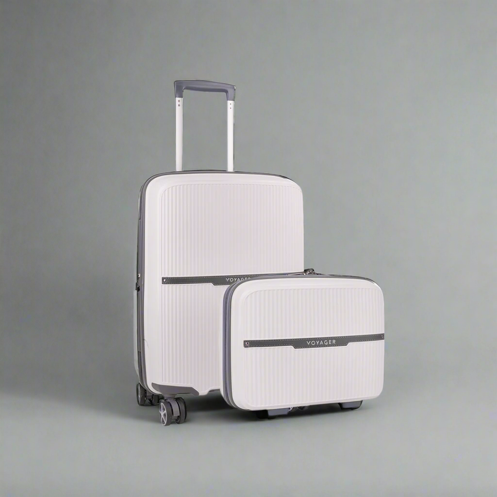 Travel light without compromising on style with the Voyager Traveler Carry-On Set, a sophisticated duo designed for effortless short trips and weekend getaways. This elite set includes a 55cm cabin-size trolley case and a matching beauty case, offering the perfect blend of convenience and elegance.