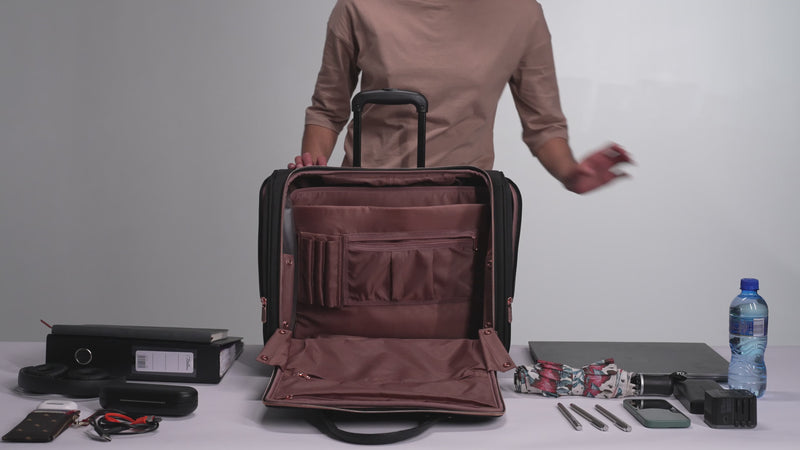 The discerning traveller with a strong sense of classic timeless style will be captivated by the Cellini Allure Collection. This elegant range is available in black with a rose gold coloured zipper for a chic finish. The Underseat Trolley with 2 wheels for easy mobility and crafted from a water-repellent material is both functional and fabulous.