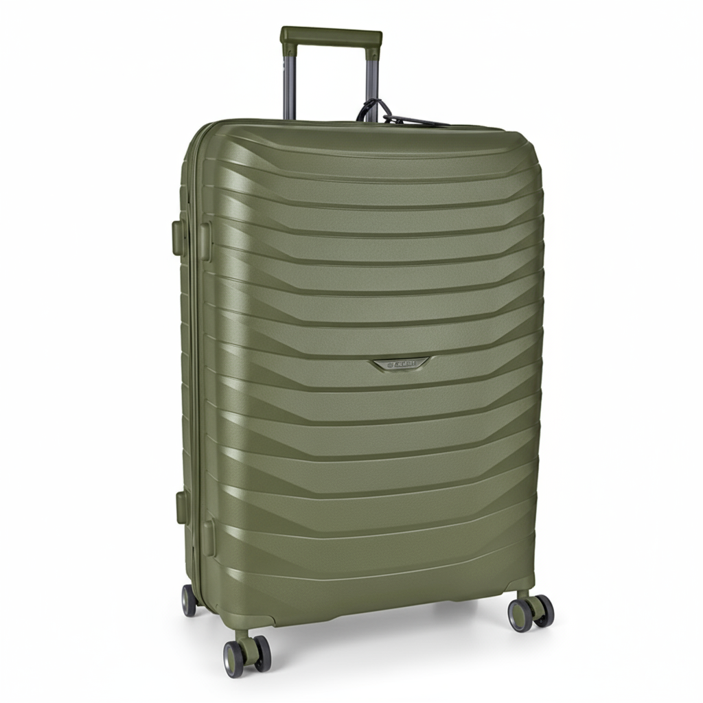The Cellini Grande Large 4-Wheel Trolley Case with top and side carry handles, is a great blend of style and functionality as you venture out to explore new horizons. This innovative luggage features the Inside Story Packing System to optimise double-sided packing configuration including a wet pouch for damp items, while the fitted Trakpouch compartment offers secure storage for your luggage tracking device to provide peace of mind. The Cellini Grande is a collection of hardshell luggage available in Army Green, Black, and Dark Grey with matching colour trims, and interior zips to optimise your travel experience.