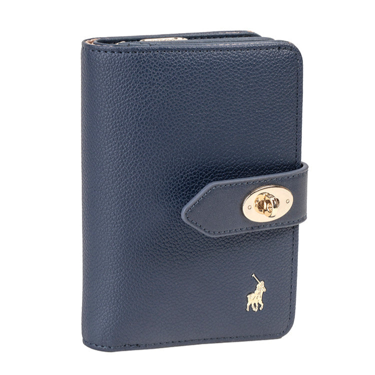 This classy Tab Purse teams effortlessly with any other accessory and provides 10 card slots and a zip section. There is a magnetic flap with a decorative turn-lock to complete the look. The Polo Carlton collection in Navy and Hazelnut is a striking way to spice up your accessory wardrobe.