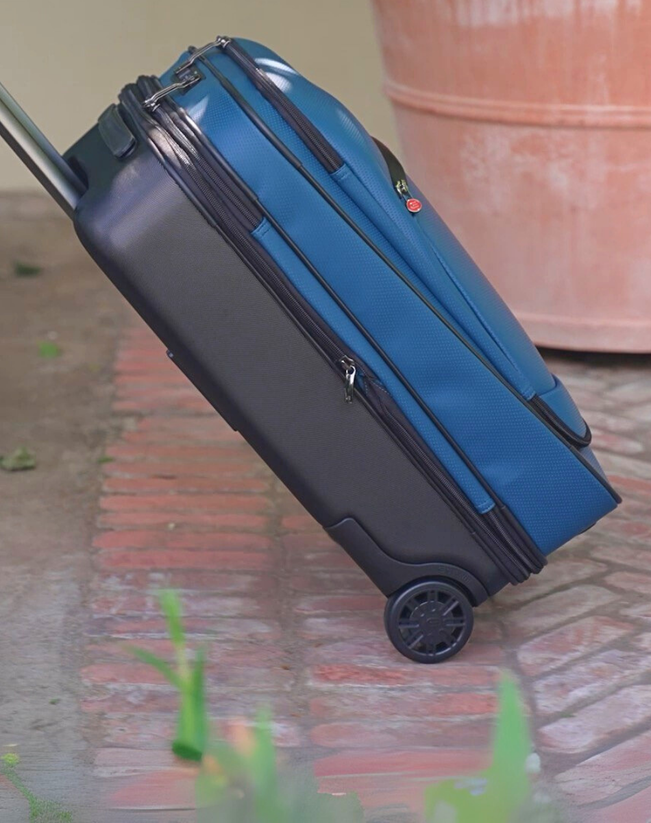 - Two-wheel design takes up less space, leaving more room inside for packing.