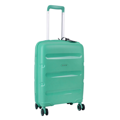 Check-in for a grand escapade, travelling to any destination is a delight with this small Carry-on 4-wheel trolley case. The convenient Cellini Inside Story Packing allows for more defined separated packing areas. The Cellini Cruze hardshell luggage is manufactured in vibrant Light Green, Mimosa, Cabaret Pink, Ceramic Turquoise and Midnight Black and now with two new colours Navy and Sage, with colour-matched trims interior zips and elastic tie-down straps to add an element of colour and fun to your travel accessories. The items in this durable range also have the advantage of a 10-year warranty.