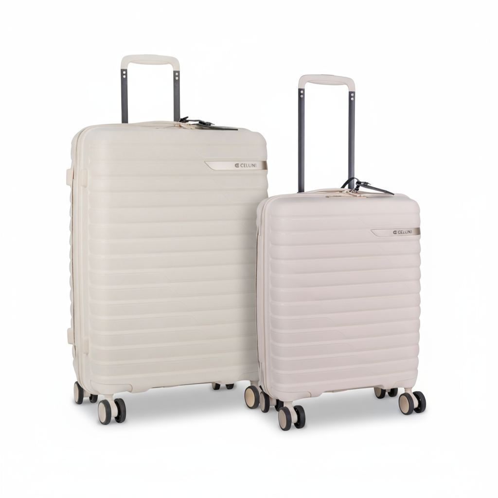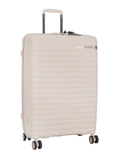 If you are heading for the bright lights of a big city or a relaxing beach vacation, the Allure sets ensures that you will arrive in style. This sleek and sophisticated travel accessory features 4-double glider wheels with gold detail, a telescopic pull handle and top carry handle as well as the super-useful Inside Story Packing system which also includes a wet pouch. The enticing Cellini Allure Collection is available in Black and Off-White and has been crafted from Polypropylene to provide lightweight durability and flexibility with superb impact and water resistance. It also has an integrated TSA lock while the Gold finishes and accents on the zips and logo create a perfect finish.