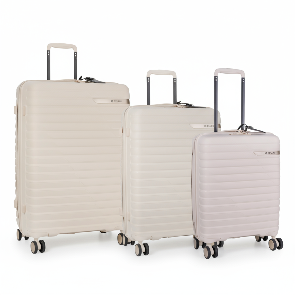 Available as a 3-piece set (Carry-On, Medium, Large), 2-piece Medium set (Carry-On & Medium), or 2-piece Large set (Carry-On & Large).