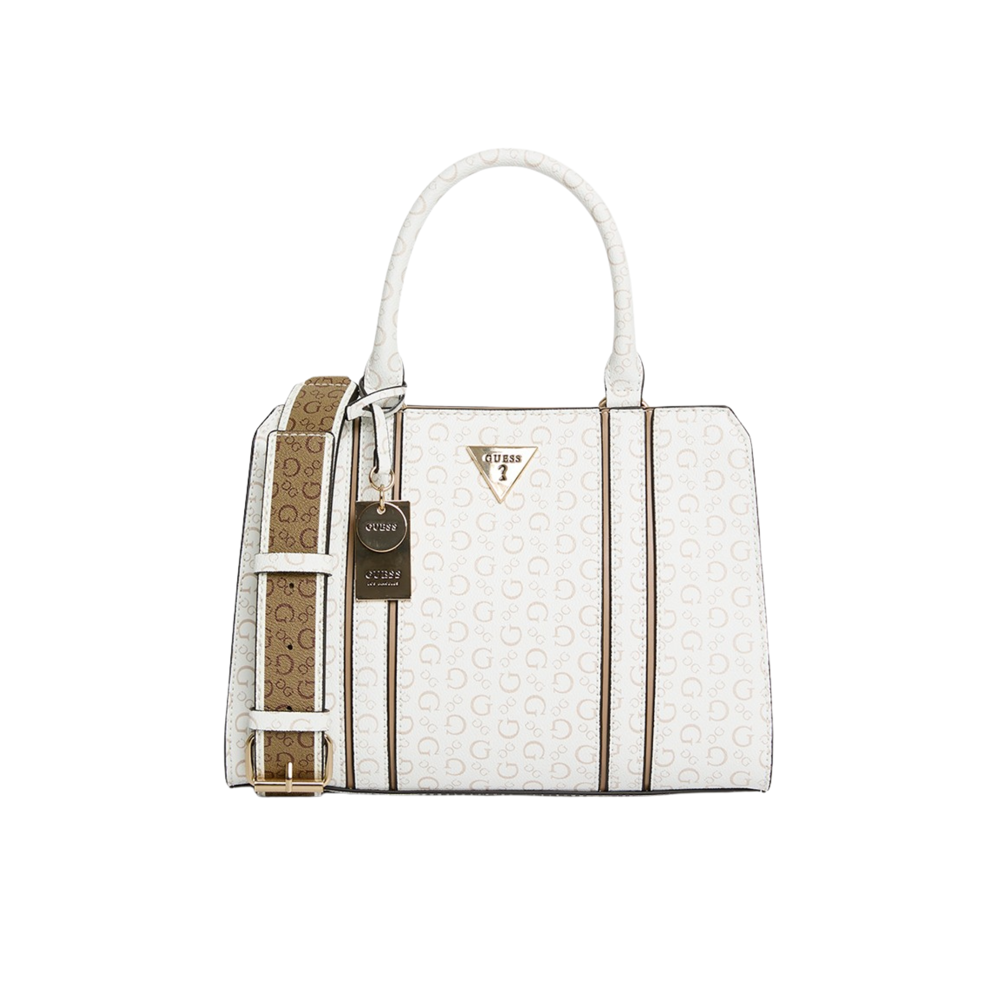 Chic and versatile, the Guess Cassian Satchel adds effortless sophistication to any outfit. Designed with the signature Guess logo print, gold-tone hardware, and a spacious interior, it’s perfect for work or weekends. Carry it by the handles or wear it crossbody for a stylish, hands-free look.