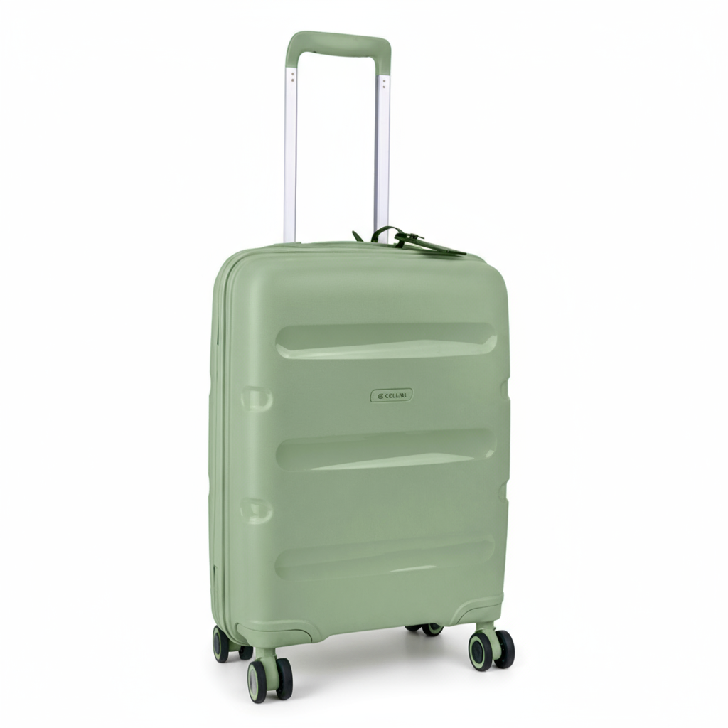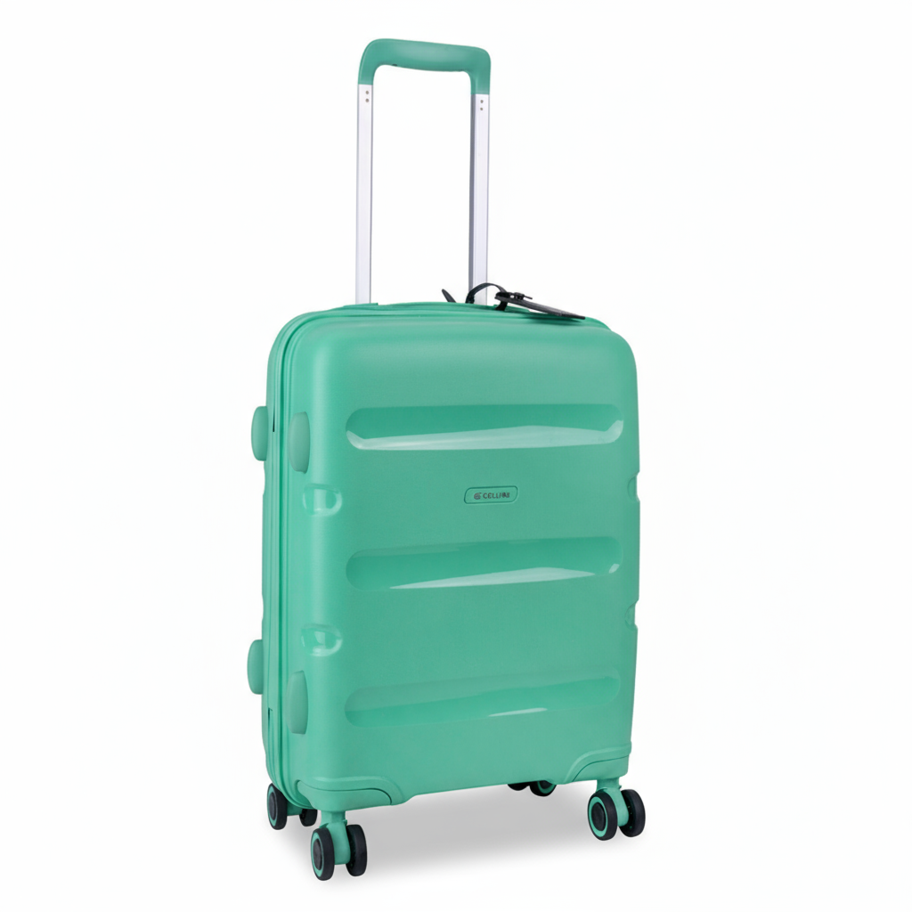 Check-in for a grand escapade, travelling to any destination is a delight with this small Carry-on 4-wheel trolley case. The convenient Cellini Inside Story Packing allows for more defined separated packing areas. The Cellini Cruze hardshell luggage is manufactured in vibrant Light Green, Mimosa, Cabaret Pink, Ceramic Turquoise and Midnight Black and now with two new colours Navy and Sage, with colour-matched trims interior zips and elastic tie-down straps to add an element of colour and fun to your travel accessories. The items in this durable range also have the advantage of a 10-year warranty.