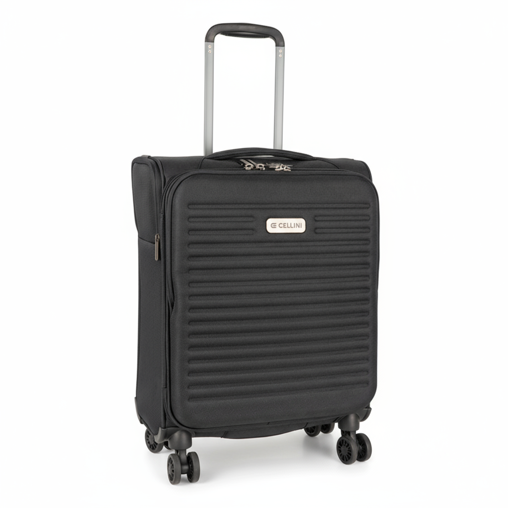 The Cellini Destiny Carry On Trolley Case is an ideal on-board travel companion featuring for double-wheels for smooth mobility, a zipped front digital organiser for your laptop, tablet and accessories and a useful a side zipped pocket for easy access to small necessities. The fitted interior will keep all your belongings in place, while the integrated TSA lock offers security and peace of mind. The Cellini Destiny Collection embraces eco-friendly cutting-edge technology and has been crafted using an EVA mould on the front panel of the luggage to provide flexibility, resilience and water-resistance. It emulates the durability of a hardshell with a softshell feel offering a lightweight construction which effectively absorbs impacts during baggage handling and extends the lifespan of your luggage. The Cellini Destiny Collection is a distinctively stylish, yet functionally fabulous range of luggage designed to meet the needs of the modern traveller.