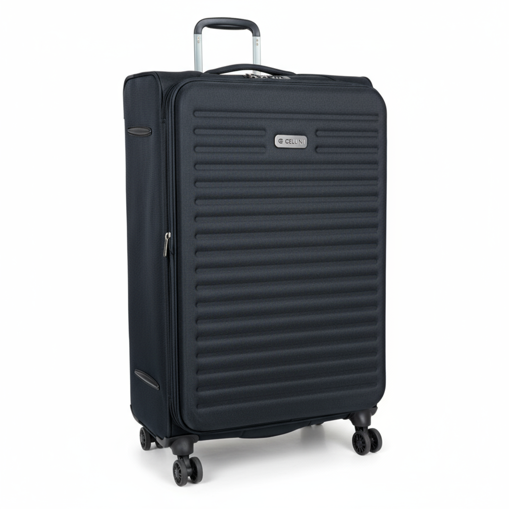 The Large Cellini Destiny Check In Trolley Case is a perfect travel accessory with an expander feature for additional packing space and 4 double-wheels for smooth mobility. The interior is fitted with the Inside Story Packing system and the integrated TSA lock offers necessary security along the way. The Cellini Destiny Collection embraces eco-friendly cutting-edge technology and has been crafted using an EVA mould on the front panel of the luggage to provide flexibility, resilience and water-resistance. It emulates the durability of a hardshell with a softshell feel offering a lightweight construction which effectively absorbs impacts during baggage handling and extends the lifespan of your luggage.