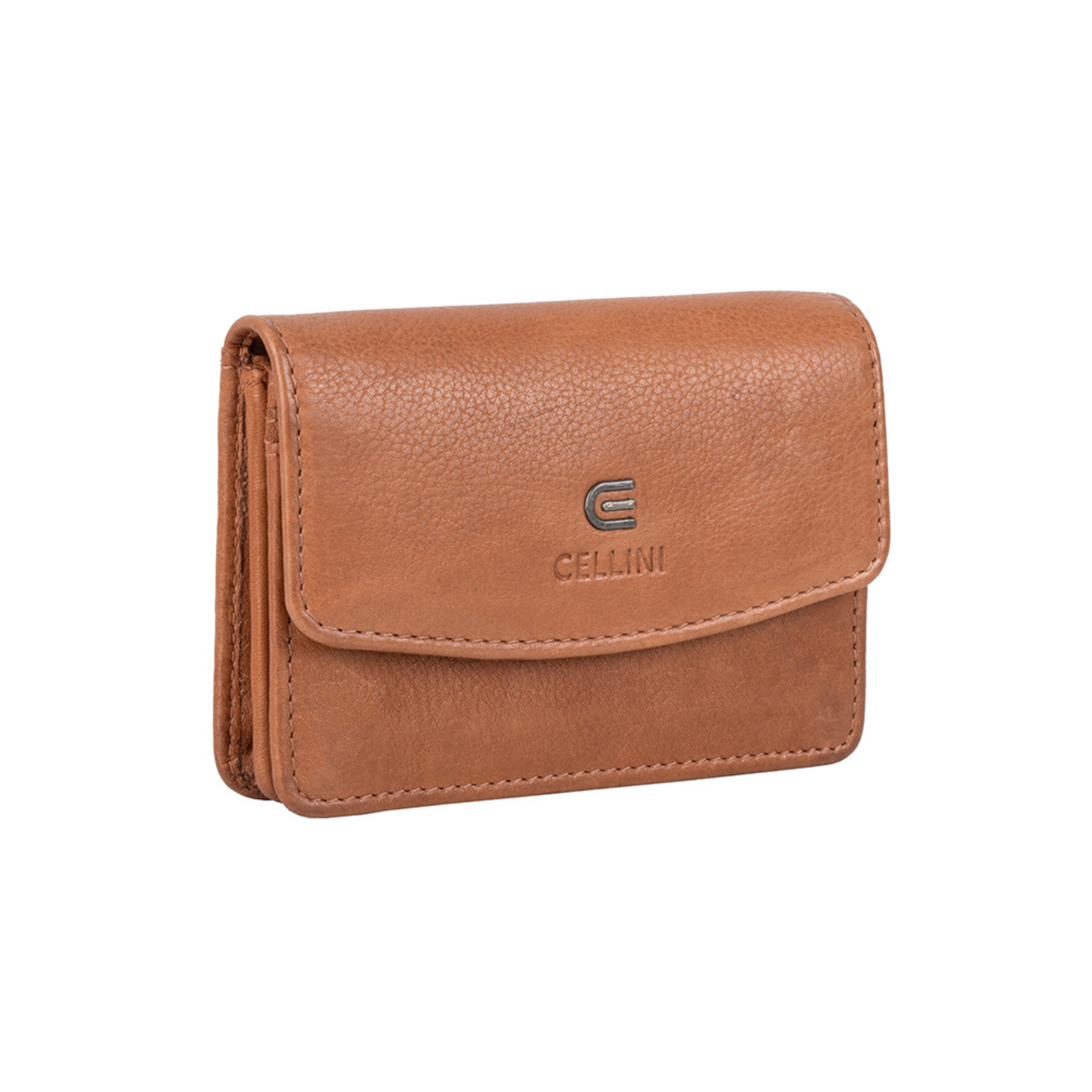 The Compact Purse in soft smooth leather offers 2 card slots and a zip section. It forms part of the Cellini Diva collection and is available in Black, Brown and Tan with gun metal hardware and an embossed Cellini logo to complete the classic look.