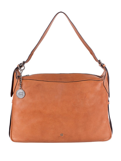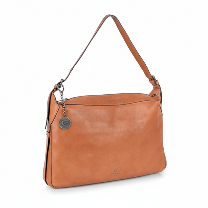 Keep all those daily necessities organised and in place with this appealing Diva Premea Flapover Shoulder Bag with a adjustable shoulder strap crafted from soft smooth leather. The double main compartments feature metal zip closures and open to reveal matching lining with internal zip and slip pockets. There is also a convenient outer back zipped sections for easy access. This timeless contemporary bag is part of the Cellini Diva collection and is available in Walnut with gun metal hardware and a Cellini logo to complete the classic look.