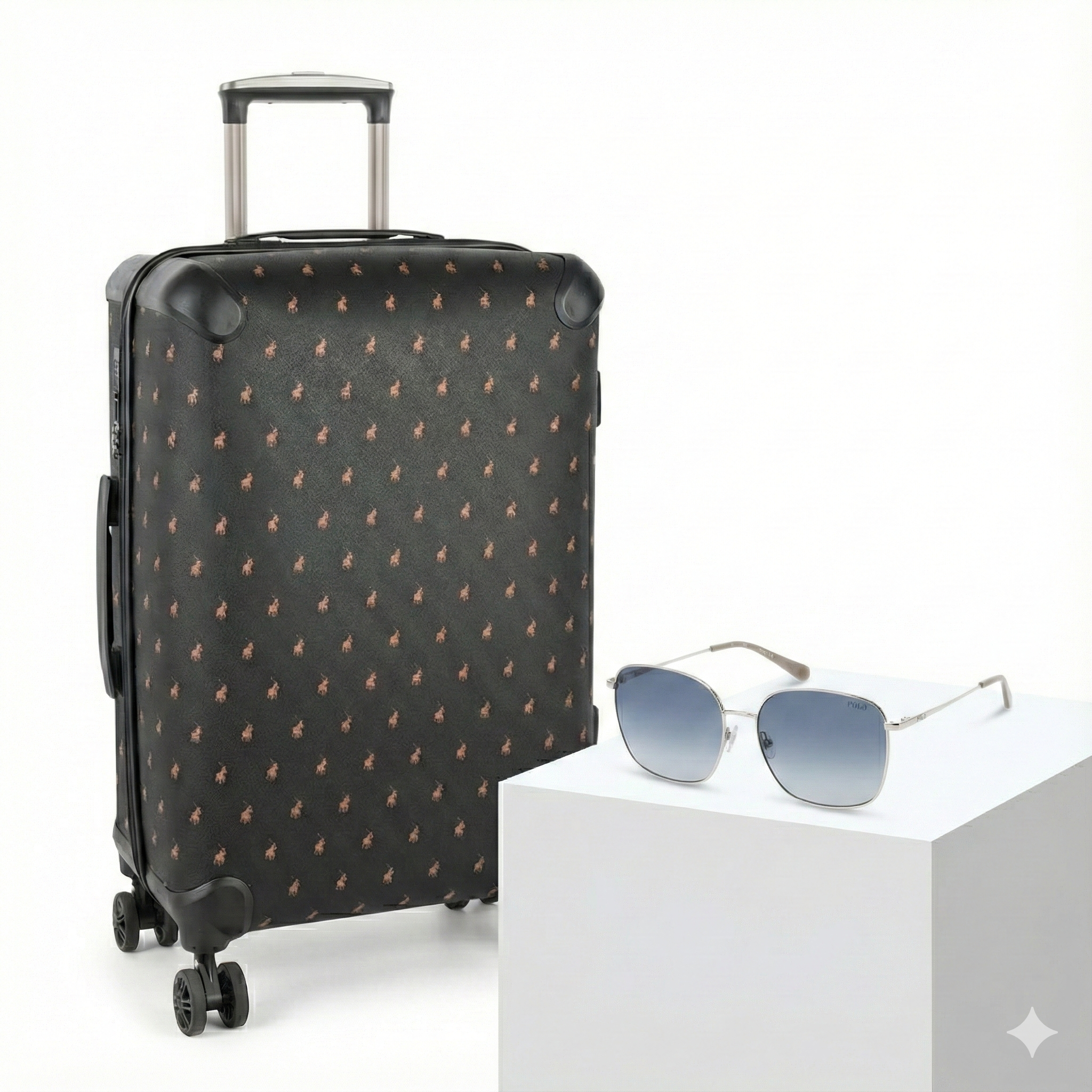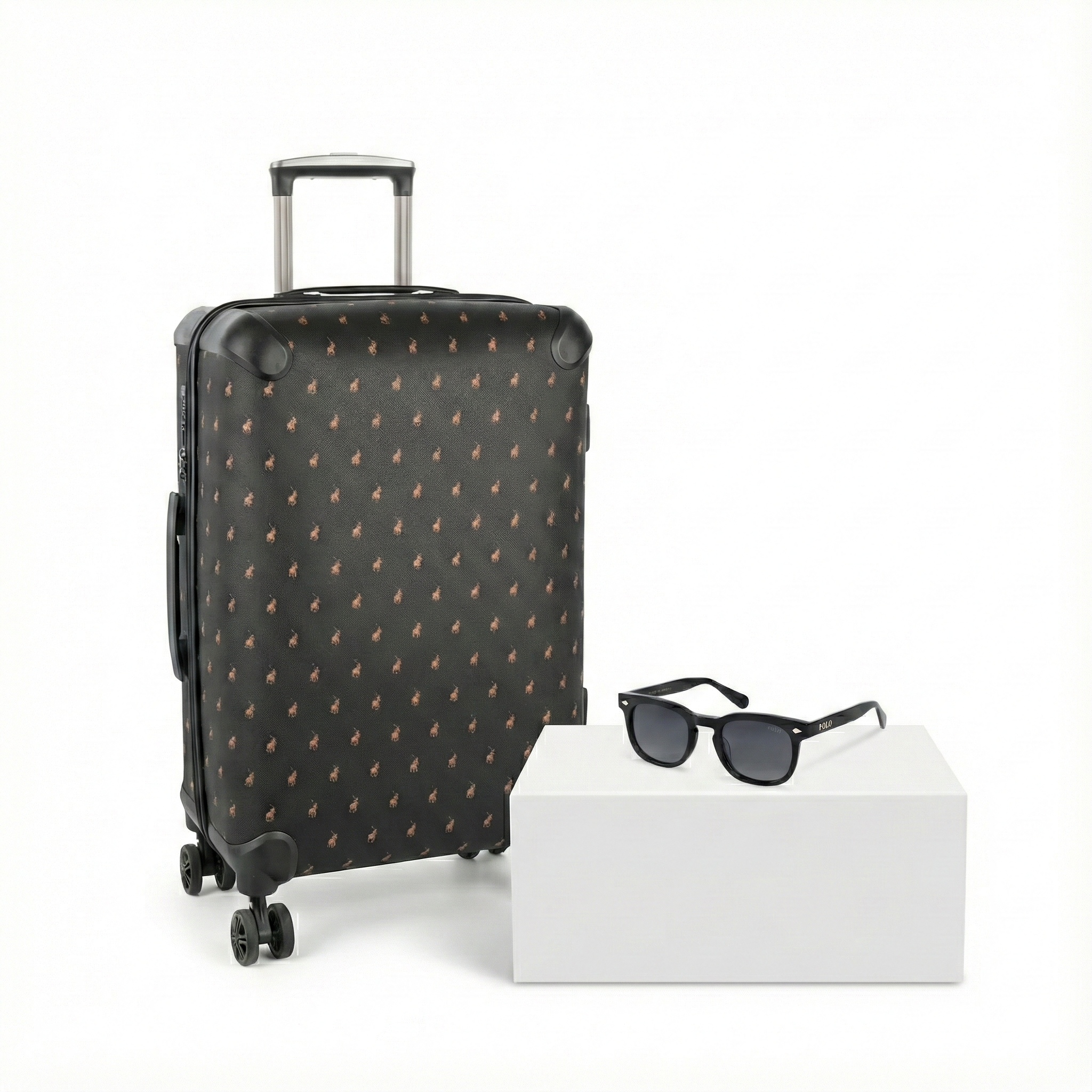 Your signature travel look starts here. The iconic Polo Double Pack 75cm Large Check-In loved for its durability, smooth 360° wheels, and unmistakable Pony print, now comes bundled with your choice of four different Polo sunglasses.