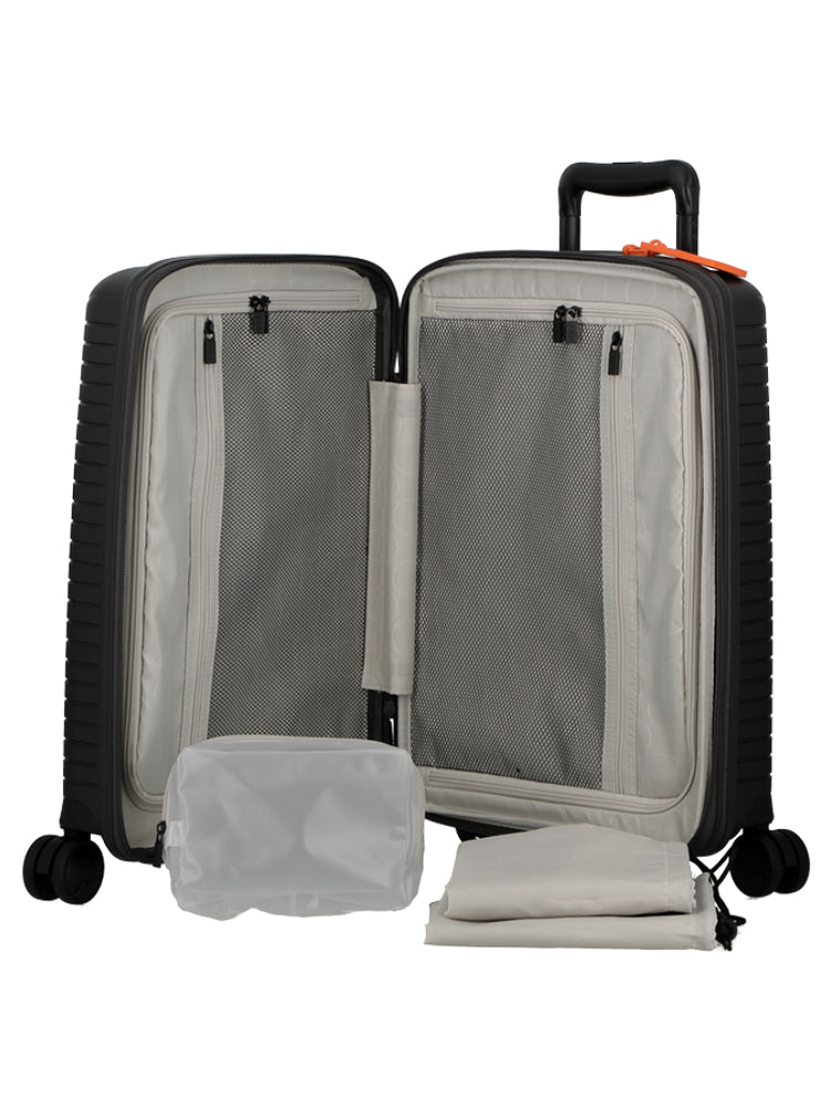 Embrace a stylish new way to embark on your travels with ultra-light Carry-On Trolley Case. This hardshell suitcase features 4 double wheels for easy mobility using the telescopic pulling handle and there is a top handle as well. The two interior compartments are fitted with zip closures and mesh pockets for organised storage while the compression straps hold your belongings in place. Transform your travel experience with the distinctive Jump® Evaé luggage range where elegance and functionality meet.