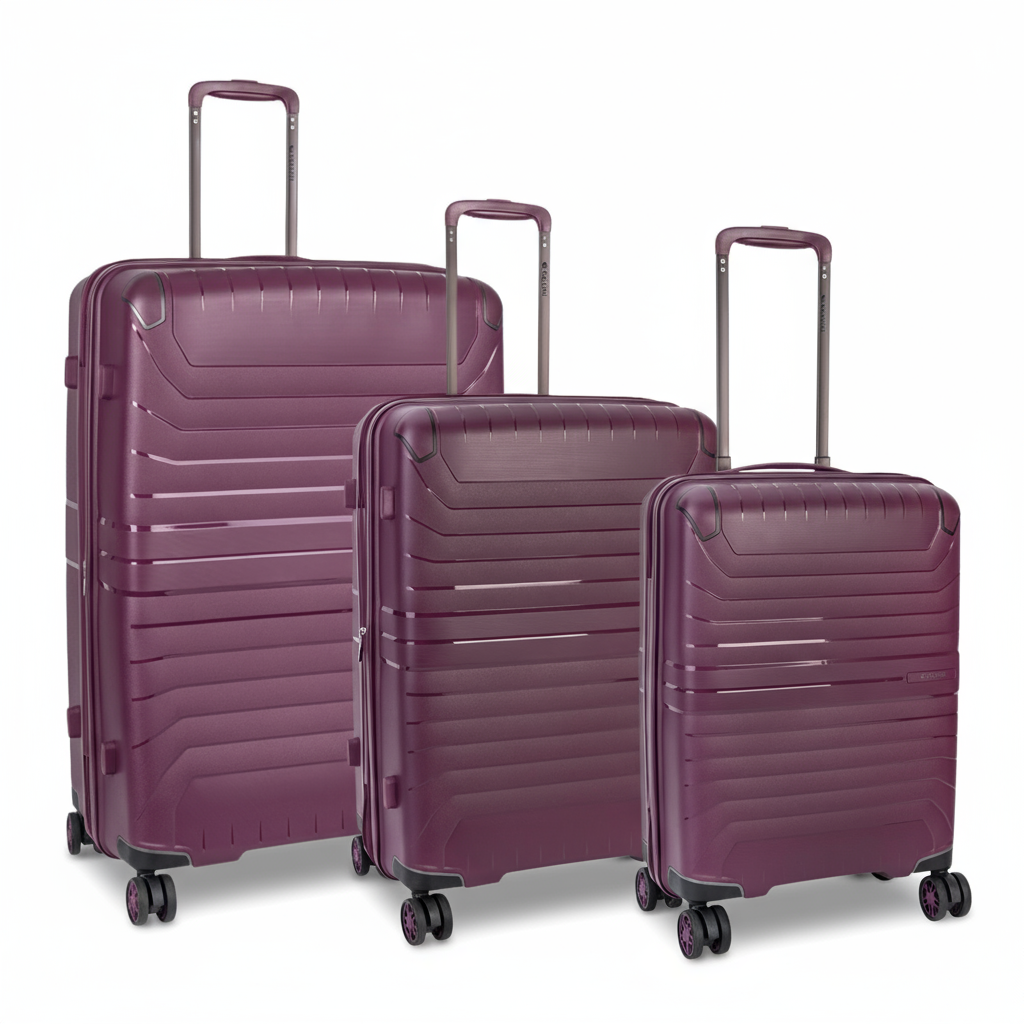 The hardshell Cellini Guardlite collection in Black and Mauve is manufactured using durable, versatile and water-resistant Polypropylene which is also lightweight, eco-friendly and offers excellent impact resistance. The interior is fitted with a zipped separator and additional zipped sections to keep all your belongings safely in place during the journey. The 4 colour-coordinated wheels offer smooth mobility and the integrated TSA lock ensures security and peace of mind.