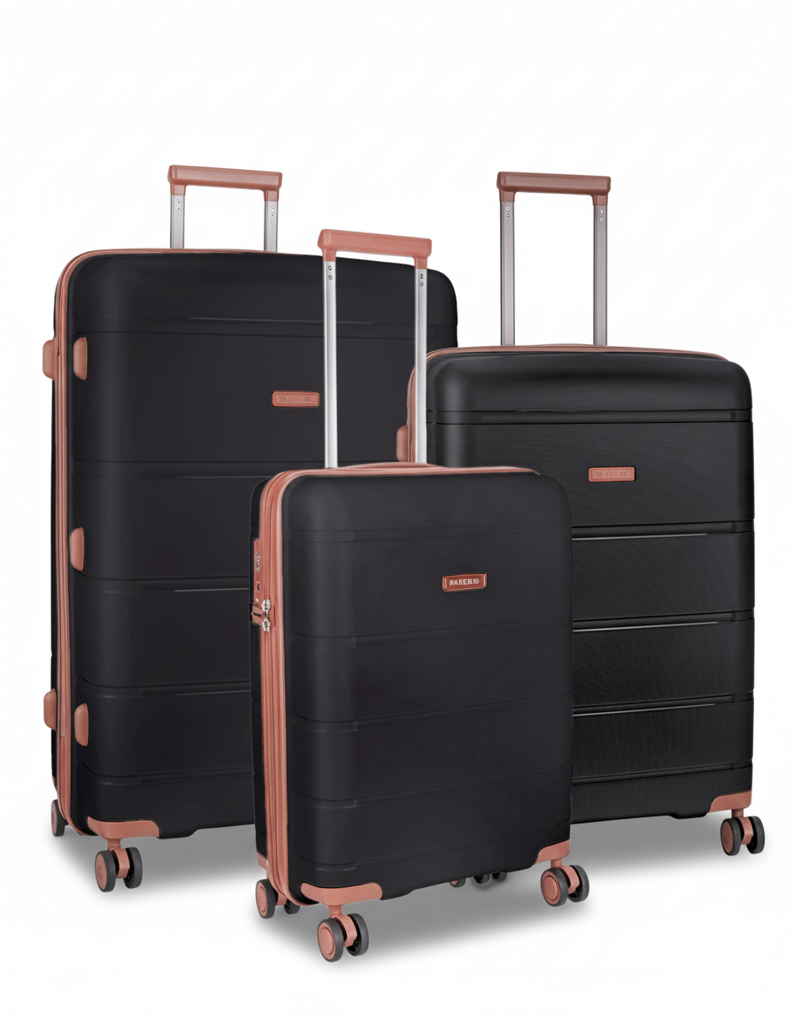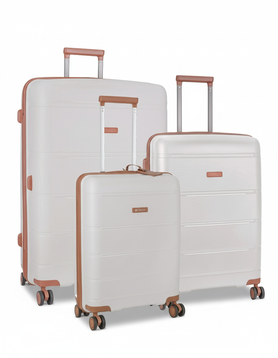 ravelling to any destination is a delight with this set. The Cellini ALL NEW Monte Carlo Hardshell range boasts a stylishly moulded polypropylene shell in elegant colours with an integrated TSA lock for added security travel. The 4 wheels allow for easy mobility while the contrasting colour-trim makes this luggage easy to identify.