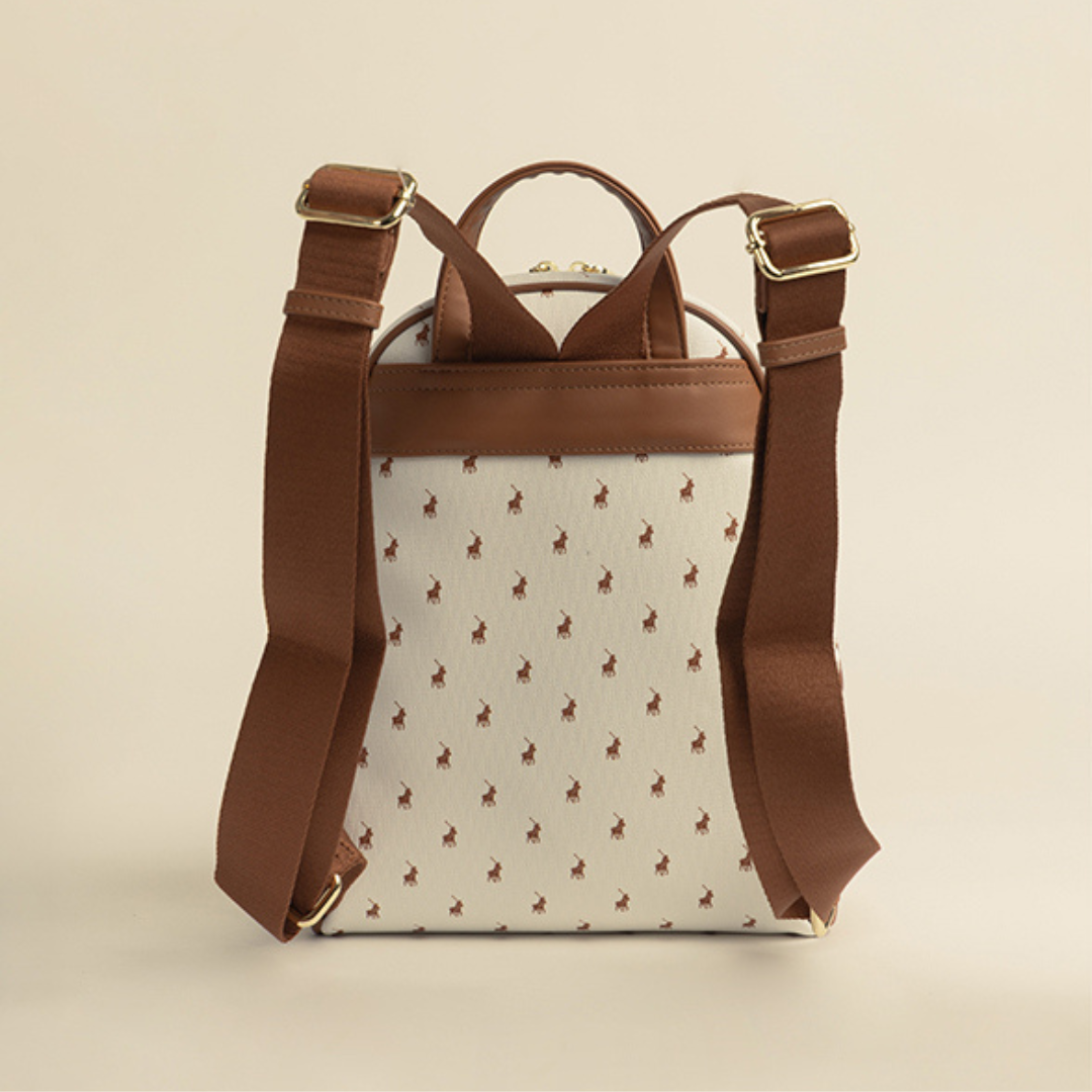 This stylish and practical Backpack seamlessly blends fashion and function - a perfect choice for those who value both style and practicality. All those daily necessities are kept safely in the main zipped section which also includes an inner zipped compartment as well as additional zip and slip pockets. The front zipped compartment provides easy access to essential items. There are comfortable adjustable nylon straps and a top handle for added convenience. The Polo Iconic collection, available in Brown and White with a neutral lining, features updated styles with the elite Polo Pony emblem as a background to create a look of timeless casual sophistication.