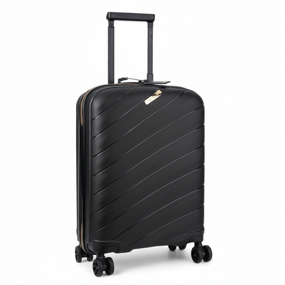 Elevate your travel experience with the Cellini Pulse Collection, where modern design meets elegance. Crafted for the fashionable traveler, each piece in this stunning range combines functionality with a chic aesthetic, ensuring you travel in style. available in three chic colours - Green, burnt Henna and Black (with gold hardware) and Black (with gunmetal hardware). Made from high-quality polypropylene, the Pulse luggage is built to withstand the rigors of travel while maintaining its stylish appearance and a a stunning floral lining that adds a touch of charm and elegance, complemented by gold-toned hardware for a sophisticated finish.