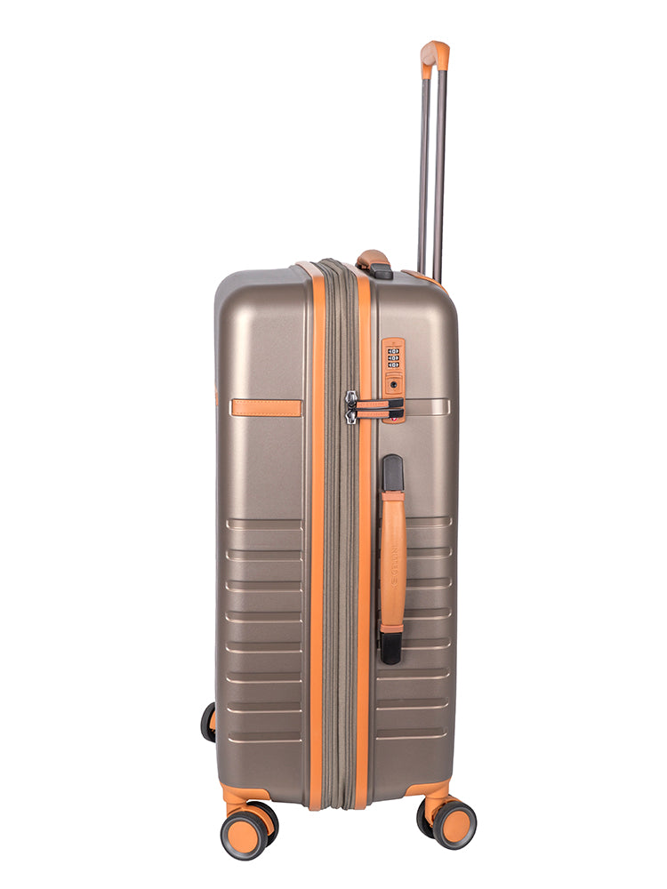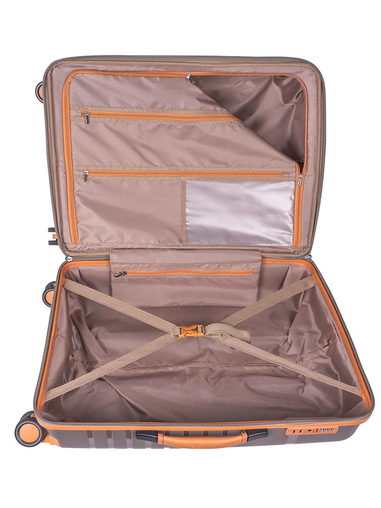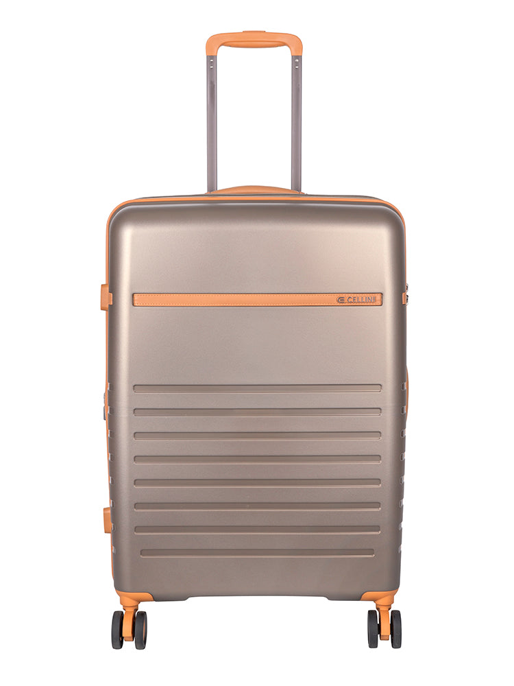 Introducing the Cellini Royale Suitcase – where modern elegance meets effortless travel. Crafted with a sleek hard-shell design and refined tan accents, this suitcase delivers premium durability, smooth 360° double-spinner wheels, and a lightweight build for stress-free journeys. Perfect for business or leisure, the Cellini Royale offers secure packing, stylish detailing, and reliable performance every trip.
