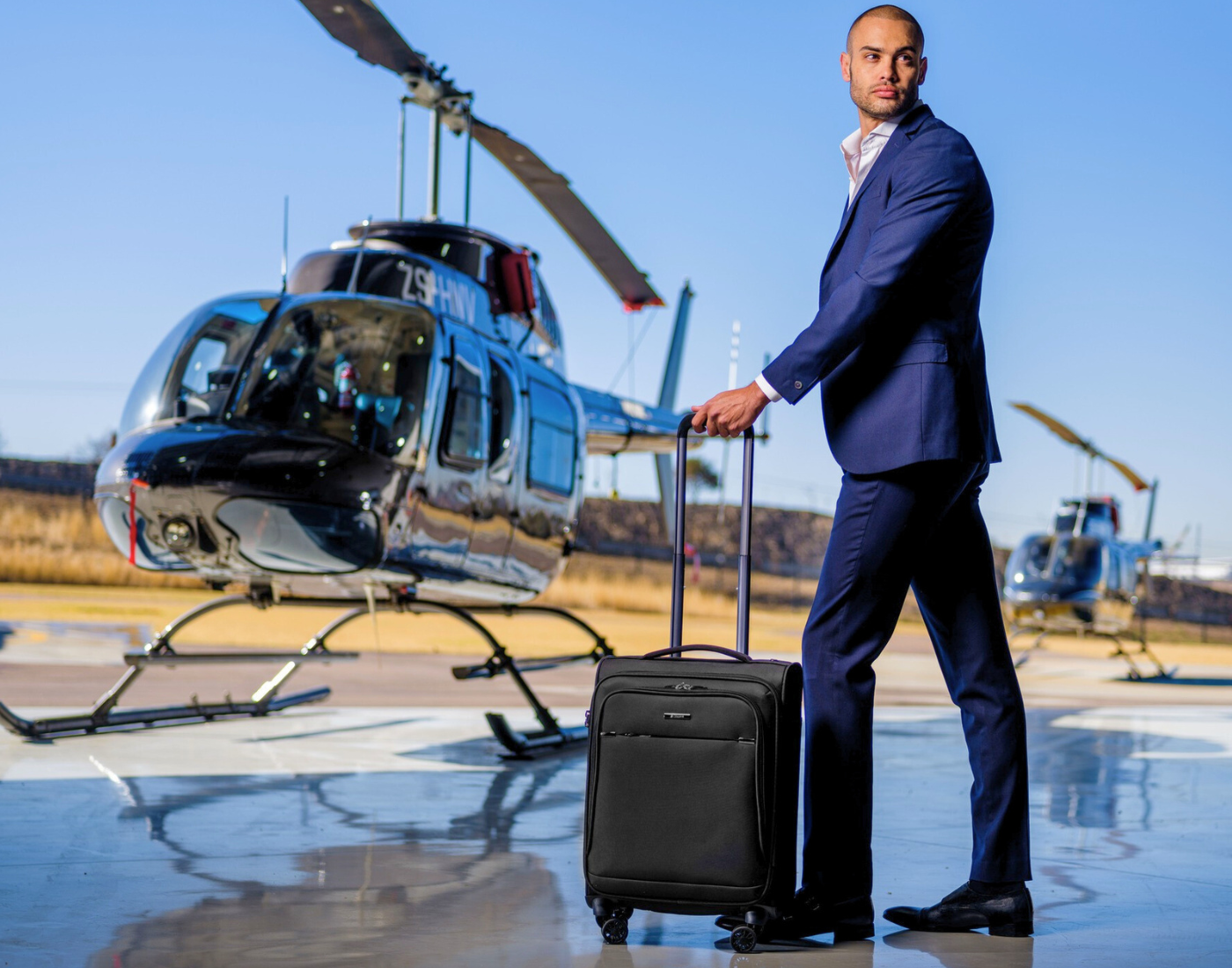 The Carry-on Business Trolley Case with an integrated TSA lock and the padded top handle is a convenient carry-all for an overnight business trip. The 4 double-wheel gliding system and multistage lightweight trolley mechanism ensure you glide smoothly and seamlessly to your destination. There is space for clothing and the internal digital organizer provides space for a tablet, laptop, cellphone, pens, business cards, and charger cables. This functional essential accessory has a lockable front pocket as well as a front pocket organizer and is fitted with Scanstop to prevent unwanted credit card data scans. In addition, there is a Neoprene side pocket to store a water bottle, newspaper, or umbrella. The premium Cellini Smartcase Collection has been manufactured using a water- and dirt-repellent soft side fabric and is available in Black.