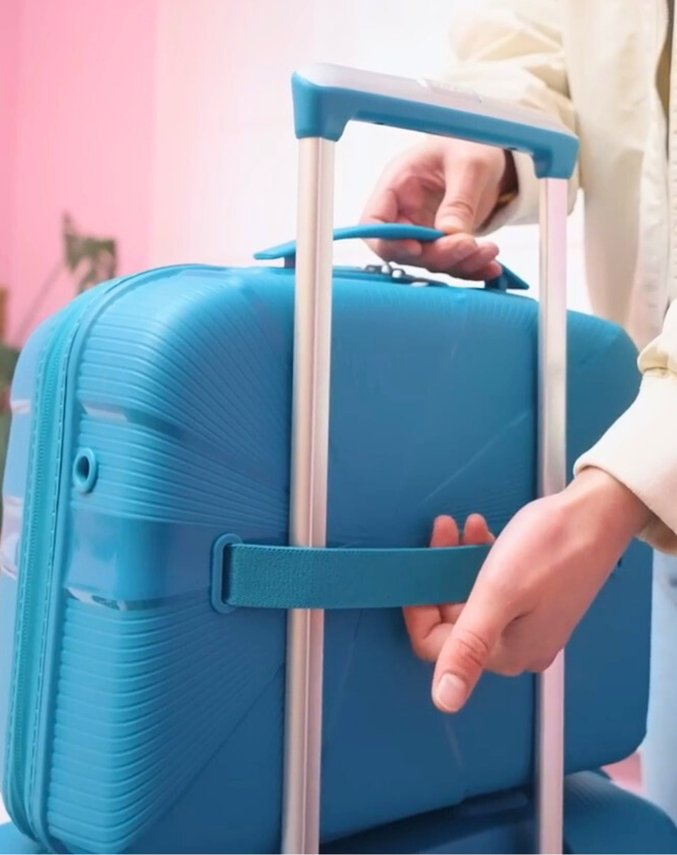 The Trolley Sleeve Attachment allows your beauty case, backpack, or cabin bag to slide securely over the handle of your carry-on for effortless travel.