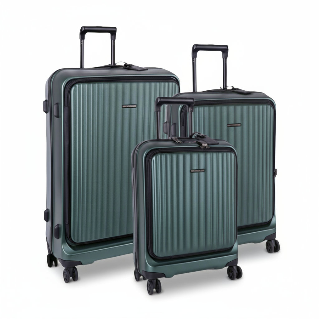 Experience the epitome of travel convenience with the Cellini Versa 2-Piece Set featuring a Small 4 Wheel Trolley Case and a versatile companion. Crafted with bespoke top and side carry handles, this set ensures effortless manoeuvrability wherever you go. The innovative Front Loading System grants easy access to your essentials without fully opening the case, while the double-sided packing facilitates premium organization. With its zip-opening divider and integrated double-locking TSA combination lock, your belongings stay secure throughout your journey. Available in Green, Black, and Champagne with a sleek metallic finish, both pieces boast four double Hinomoto silent wheels for a smooth, durable, and quiet travel experience.
